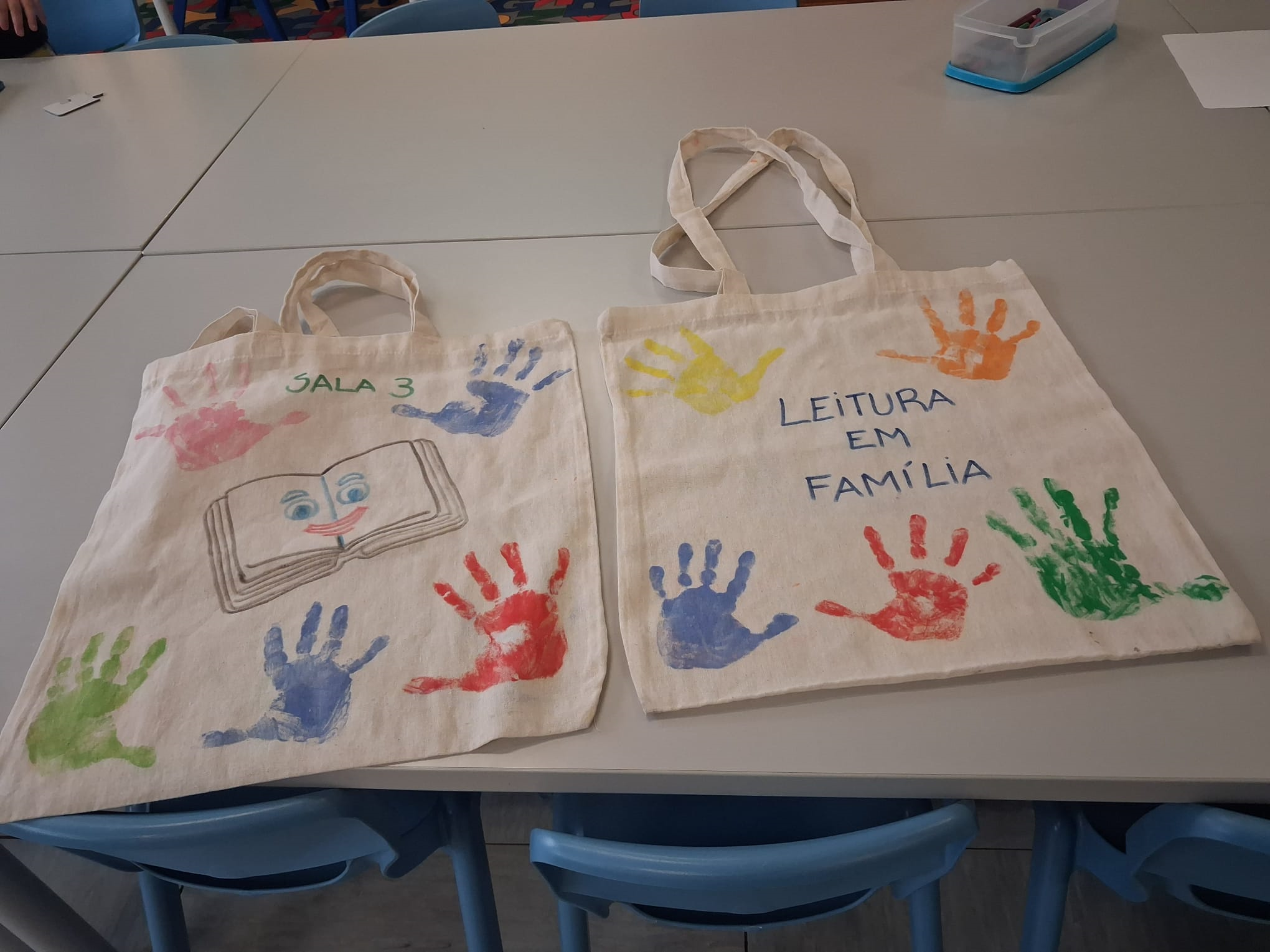 Este projeto iniciou-se com a participação de todos os Jardins de Infância deste agrupamento, com a elaboração e decoração dos sacos para transportar os livros da biblioteca escolar para casa.