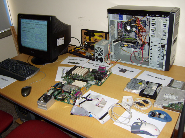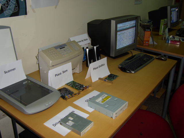 Desta vez os alunos do 9º G do Curso CEF-Operador de Informática e os professores: Ana Sofia Silva, Fernando Sousa, João Paulo Bento e Paulo Monteiro, organizaram uma exposição de material informático na Biblioteca da nossa escola. Nesta exposição foi possível apreciar-se diferentes trabalhos elaborados pelos alunos nas aulas da Componente Técnica de Informática e, ao mesmo tempo, assistir à passagem de um filme realizado ao longo deste período, nas respectivas aulas.
