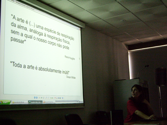 Como definir Arte? O que é a Arte? Quem faz Arte? A Arte tem limites? Estas foram as questões de ponto de partida para uma reflexão profunda pelos presentes, pois também o foi e continuará a ser por muitos estudiosos e que, até hoje, ainda não foram respondidas. Foram também debatidos vários aspectos e conceitos que “guiaram” este interessante debate na tentativa de definir arte, artista e obra de arte.