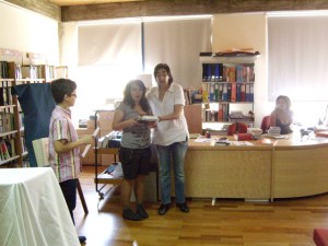 Foi um momento de festa em que foi concluído o Plano de Actividades da Biblioteca do ano lectivo 2007/2008. Houve prémios para todos: livros, DVDs, canetas, agendas e revistas “Com Pias & Cabeça”, cuja coordenadora, a professora Conceição Brandão, ofereceu aos presentes.