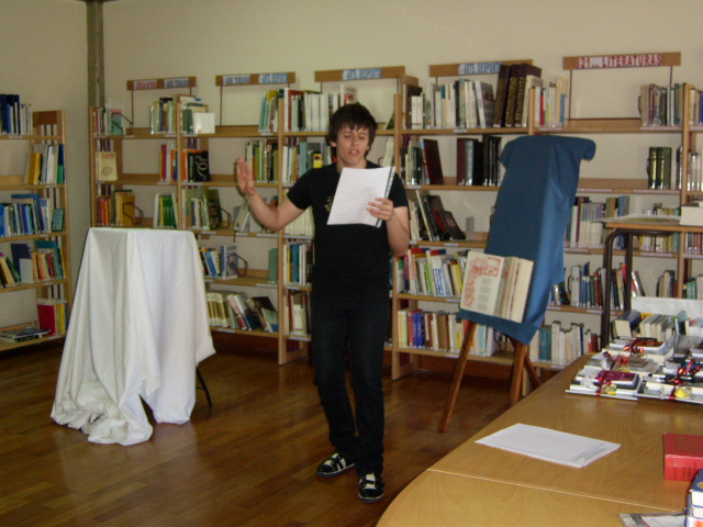 Realizou-se hoje na Biblioteca, pelas 14.30 horas, a Eliminatória do Concurso de Leitura em Voz Alta que teve início em Dezembro de 2007. Nesta eliminatória foram apurados os seis melhores leitores da Escola Secundária de Lousada, das modalidades do básico e do secundário, como se pode ver nas fotos. O 1º prémio foi atribuído a Clara e a Ana Cristina, do 8º C, do básico – e a Mauro Pinho, do 10º B, do secundário.