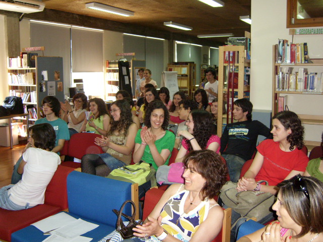 Foi um momento de festa em que foi concluído o Plano de Actividades da Biblioteca do ano lectivo 2007/2008. Houve prémios para todos: livros, DVDs, canetas, agendas e revistas “Com Pias & Cabeça”, cuja coordenadora, a professora Conceição Brandão, ofereceu aos presentes.