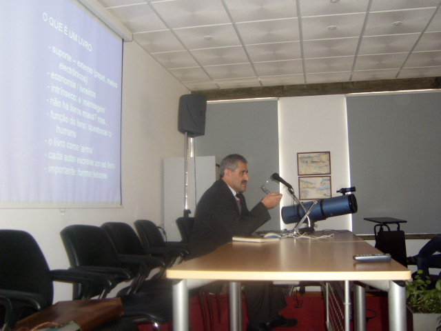 O Dr. Lino Moreira da Silva, professor no Departamento de Metodologias da Educação da Universidade do Minho e autor de inúmeros livros publicados até à data, esteve hoje, dia 12 de Novembro, pelas 10,15 horas, presente no Auditório da nossa escola para conversar com os alunos do 12º ano sobre a vida e a obra de Fernando Pessoa e seus heterónimos. Este é o poeta que – escrevendo o livro Mensagem – tenta revisar o passado do glorioso Império Português em busca de um sentido para a antiga grandeza e a actual decadência.