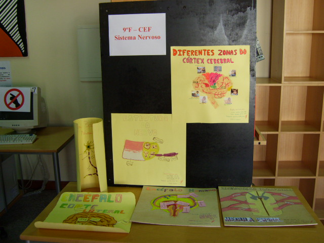 Encontram-se expostos, no interior da biblioteca, trabalhos produzidos pelos formandos do 9º F – CEF, sob a orientação da professora Yaqueline Alves sobre reproduções do Sistema Nervoso. Estes trabalhos em plasticina são o resultado do sentido estético, da criatividade e do gosto pela Ciência.