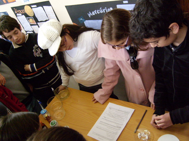 Hoje, dia 24 de Novembro de 2009, comemorou-se na Biblioteca da nossa escola o Dia Mundial da Ciência. Neste âmbito, foi desenvolvido um vasto leque de experiências a que algumas turmas dos 7º, 8º e 9º anos puderam assistir e participar. Estas actividades envolveram as disciplinas de Ciências Naturais, Ciências Físico-Químicas, Matemática (ensino básico e secundário) e o Clube de Ciência Divertida, tendo sido dinamizadas, em conjunto com os seus professores, por alunos das turmas 7ºA, 7ºD e 8ºB.