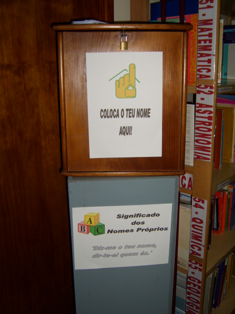 Na biblioteca encontrarás todas as semanas as respostas ao significado do teu nome próprio. Para isso, deverás colocar o nome de que pretendes saber o significado e… a professora Eugénia Gomes tratará de te dar essa interessante explicação.