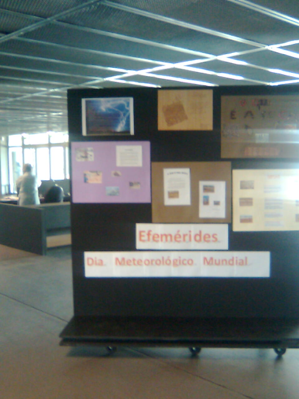 Hoje, dia 23 de Março, comemorou-se o Dia Mundial da Meteorologia na biblioteca. A biblioteca em articulação com os alunos de Geografia do 10.º G, da professora Isaura Couto participaram expondo cartazes de trabalhos de pesquisa sobre alguns dos fenómenos meteorológicos mais conhecidos.