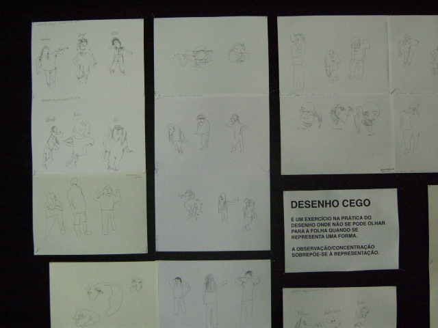 Encontra-se patente no átrio de exposições da escola uma mostra de trabalhos dos alunos do 10.º K, de Artes Visuais, sobre Desenho Cego, executados nas aulas do professor Alexandre Ribeiro que merece a nossa cuidada apreciação.