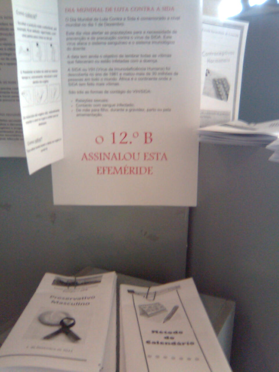 No âmbito da disciplina de Biologia, sob a orientação da professora Ana Maria Ferreira, os alunos do 12.ºB elaboraram vários panfletos esclarecedores de alguns métodos contracetivos, que disponibilizaram na biblioteca para toda a comunidade escolar. Esta atividade assinalou esta importante efeméride. Este dia visa alertar as populações, em geral, para a necessidade de prevenção e de precaução contra o vírus da SIDA, que ataca o sistema sanguíneo e o sistema imunológico dos infetados.