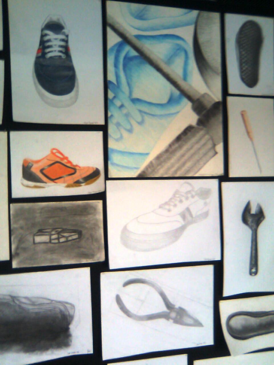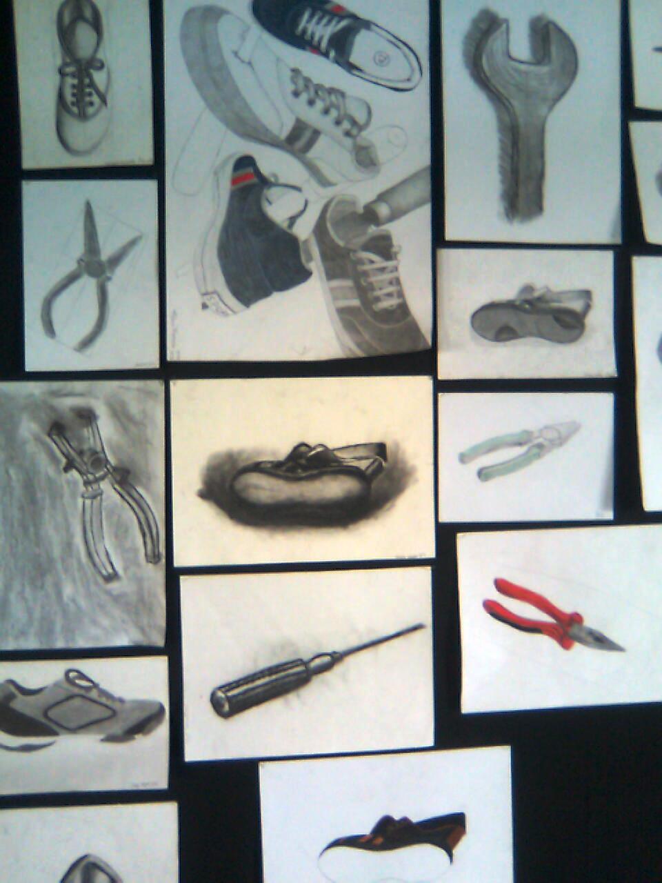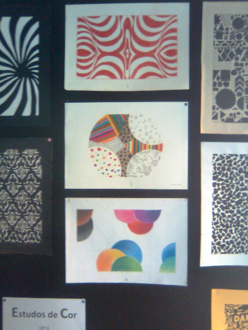 Os alunos do 10.º G expõem na entrada da escola, ao longo desta semana, trabalhos realizados nas aulas de Desenho e sob a orientação da professora Suzana Praça.