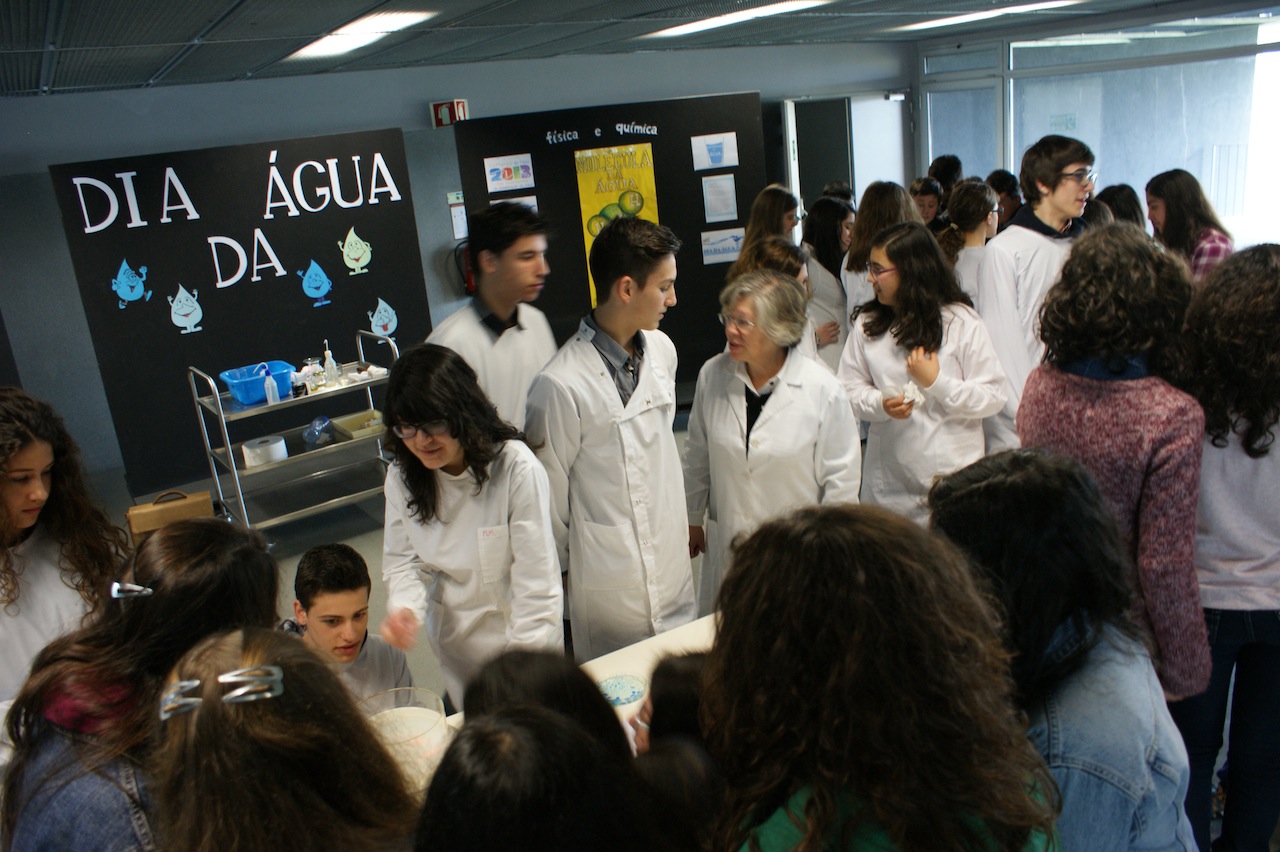Integrada no projeto MONTEPIO, que na nossa escola se intitula COM.PENSAR.TE, hoje foi a vez da dinamização de ateliês com experiências relacionadas com a Água. Estas atividades foram dinamizadas pela professora Odete Araújo, de Físico-Química, (responsável pelo eixo das Ciências Experimentais deste projeto) e pelos alunos do 11.º A e decorreram ao longo da manhã, no átrio da escola, onde puderam ser visitadas por todos os alunos do 3.º ciclo do ensino básico.