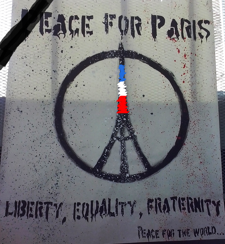 Este cartaz lembra que foi a Liberdade, a Igualdade e a Fraternidade que foram atacadas.