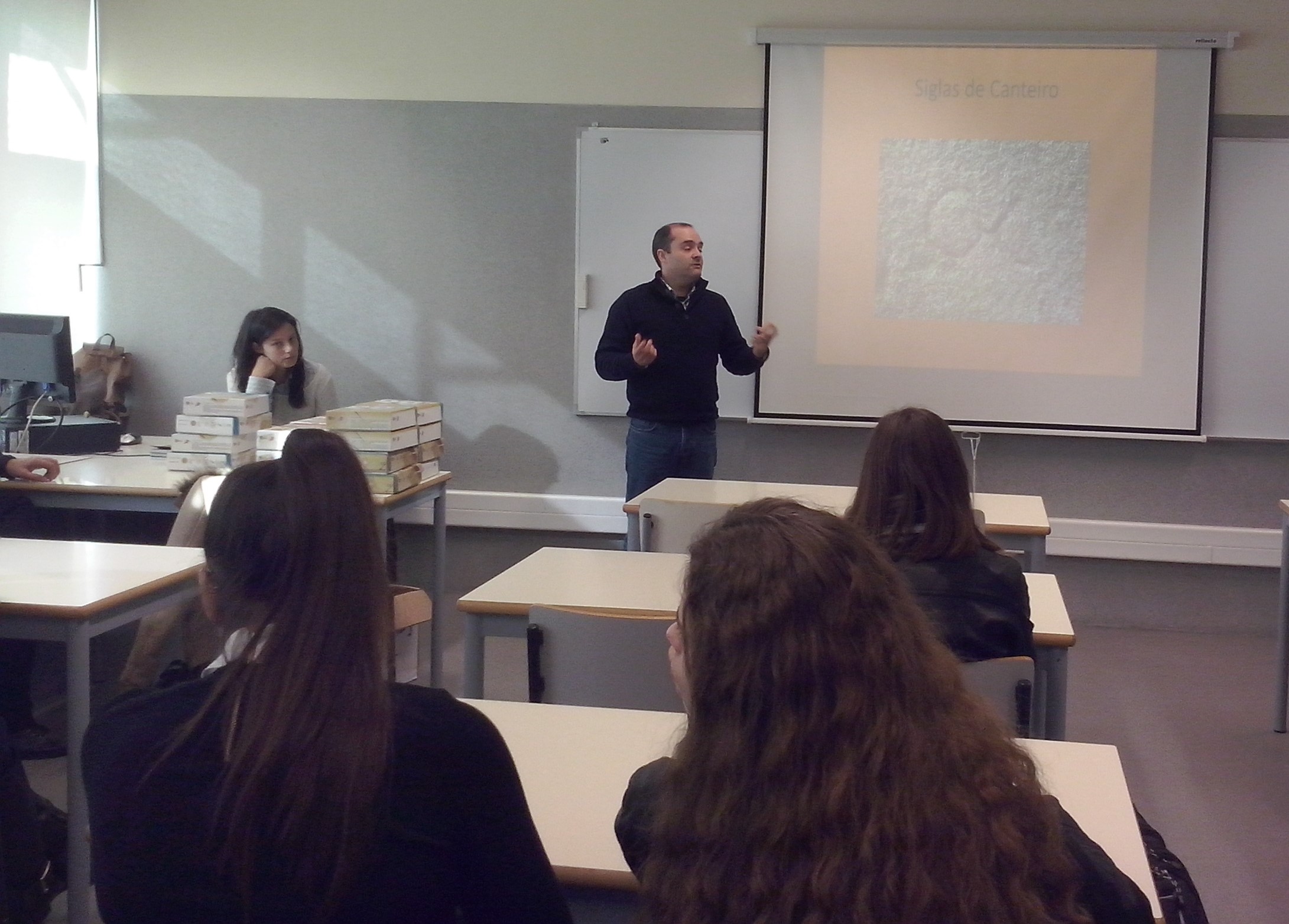 Hoje, os técnicos da Rota do Românico, Dr. Joaquim Costa e Dra. Tânia Nogueira, conversaram com os alunos do 10.ºI, de Artes Visuais, na aula de História e Cultura das Artes. Começaram por falar sobre a arte românica, desde os séculos XI ao XIV, que foi uma arte, sobretudo religiosa. Esta arte, conhecida por arte da Reconquista, está associada às Ordens Religiosas e é construída em pedra granítica. A arte da cantaria. Mestres canteiros eram os pedreiros e escultores.