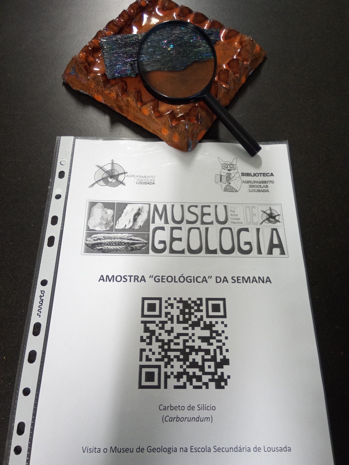 Esta semana o Museu de Geologia trouxe à nossa biblioteca da Escola Secundária uma amostra geológica de Carbeto de Silício.