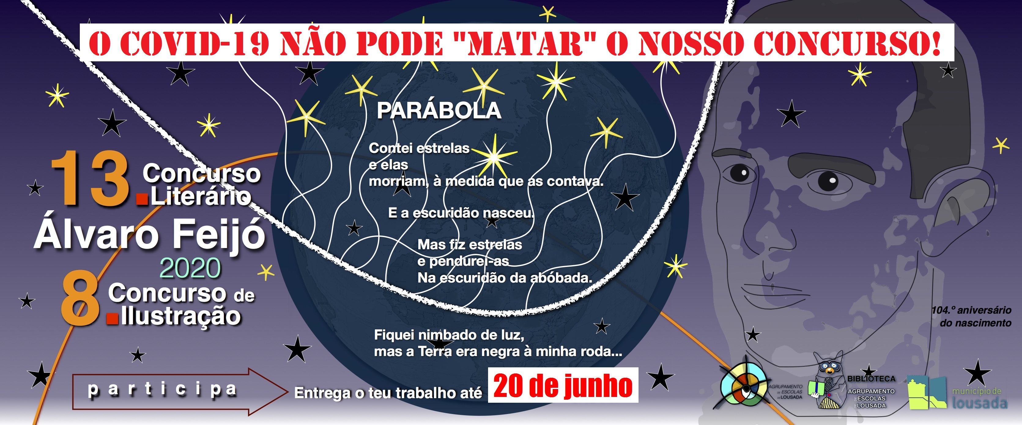 Abr23 O Covid-19 não pode “matar” este concurso!!! Posted on Abril 23, 2020 by AFPA Padrão Vamos participar até 20 de junho! REGULAMENTO Concurso Literário 2020 »»»»»» REGULAMENTO Concurso Ilustração 2020 »»»»» Incentivem os vossos alunos! Partilha: Clique para partilhar no Facebook (Abre numa nova janela) Facebook Click to share on X (Abre numa nova janela) X Clique para partilhar no LinkedIn (Abre numa nova janela) LinkedIn Mais Carregue aqui para imprimir (Abre numa nova janela) Imprimir Clique para partilhar no WhatsApp (Abre numa nova janela) WhatsApp Carregue aqui para enviar por email a um amigo (Abre numa nova janela) E-mail Gosto Carregando... Relacionado