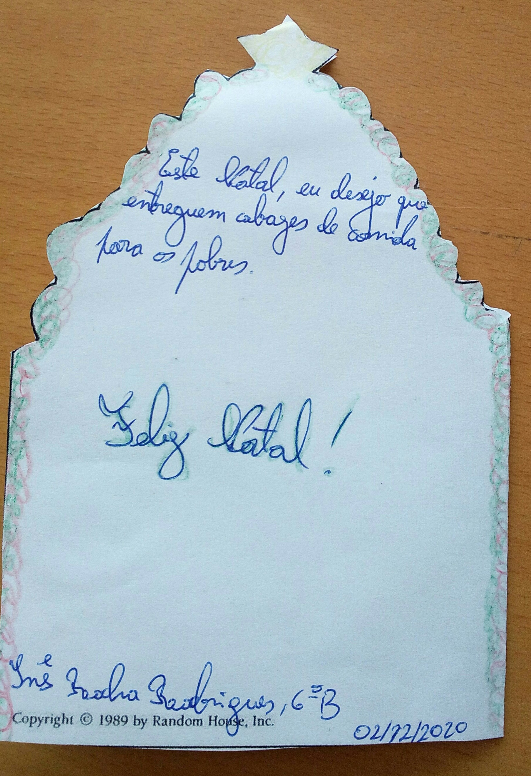 Dez16 Desejos de Natal Posted on Dezembro 16, 2020 by AFPA Padrão Numa oficina de escrita, dinamizada e orientada, na biblioteca da EB 2/3, pela professora bibliotecária Elisabete Camões, os alunos do 2.º ciclo puderam escrever os seus votos de Natal 2020 para o azevinho. Partilha: Clique para partilhar no Facebook (Abre numa nova janela) Facebook Click to share on X (Abre numa nova janela) X Clique para partilhar no LinkedIn (Abre numa nova janela) LinkedIn Mais Carregue aqui para imprimir (Abre numa nova janela) Imprimir Clique para partilhar no WhatsApp (Abre numa nova janela) WhatsApp Carregue aqui para enviar por email a um amigo (Abre numa nova janela) E-mail Gosto Carregando... Relacionado