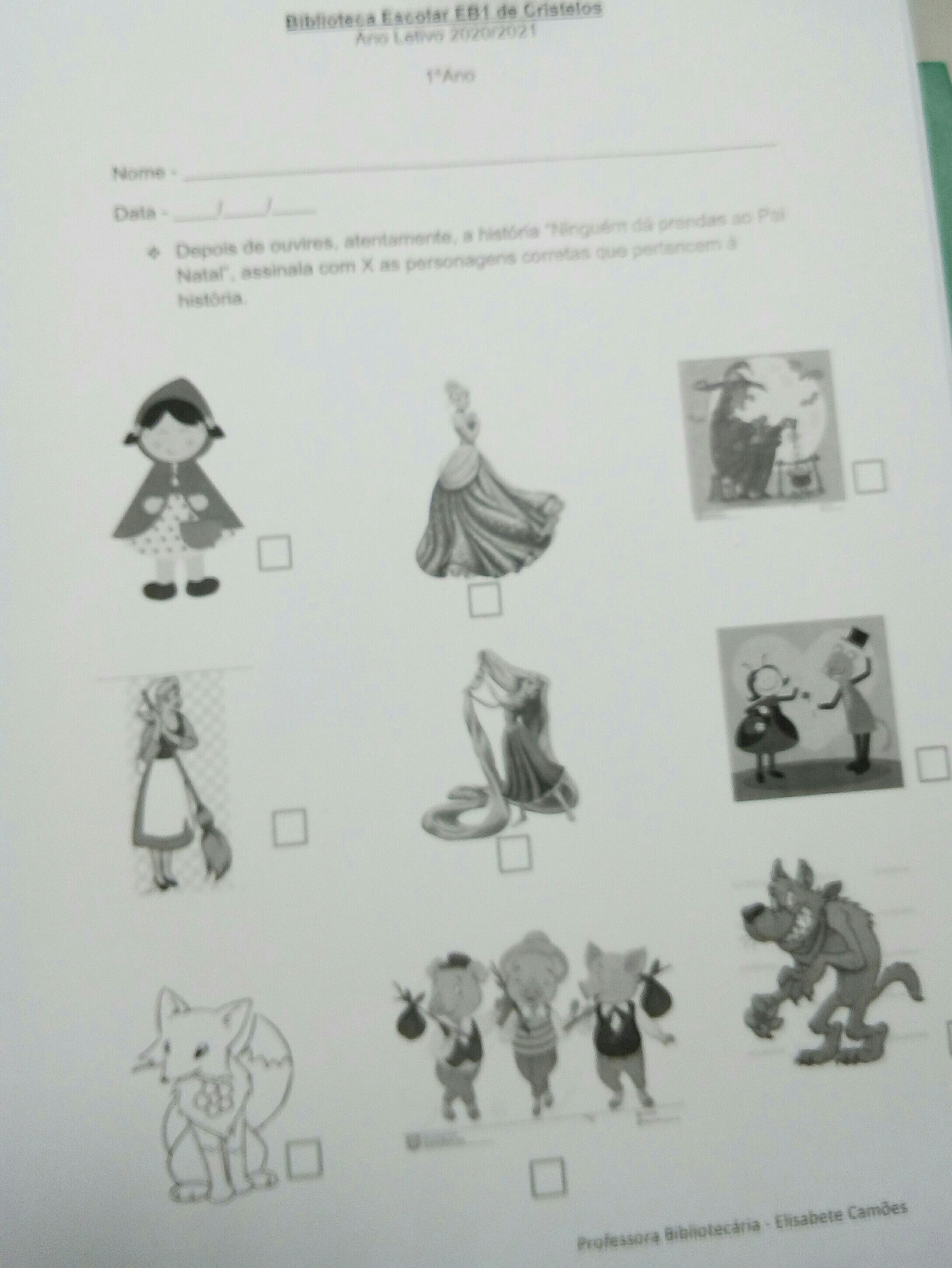 Atividade realizada pela professora bibliotecária Elisabete Camões, na biblioteca da EB1 de Cristelos, numa turma de 1.º ano.