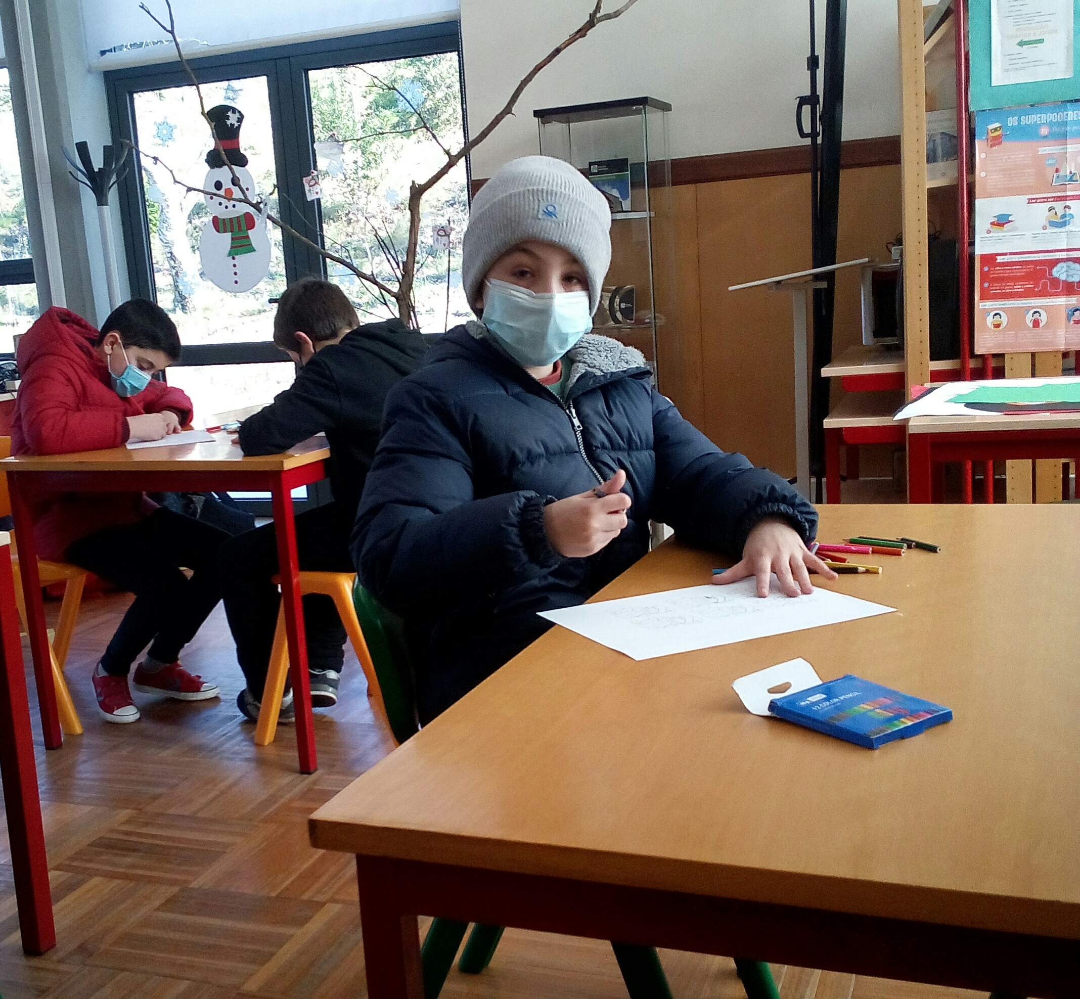 Foram para a Biblioteca e puseram “mãos à obra”!!! Resultou numa atividade de pintura e pesquisa de imagens alusivas ao inverno.