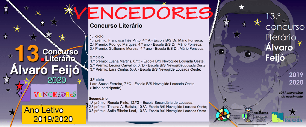 E por que vencemos o Covid-19… revelamos os nomes dos alunos vencedores dos prémios do concurso literário Álvaro Feijó, referentes ao ano letivo 2019/2020: