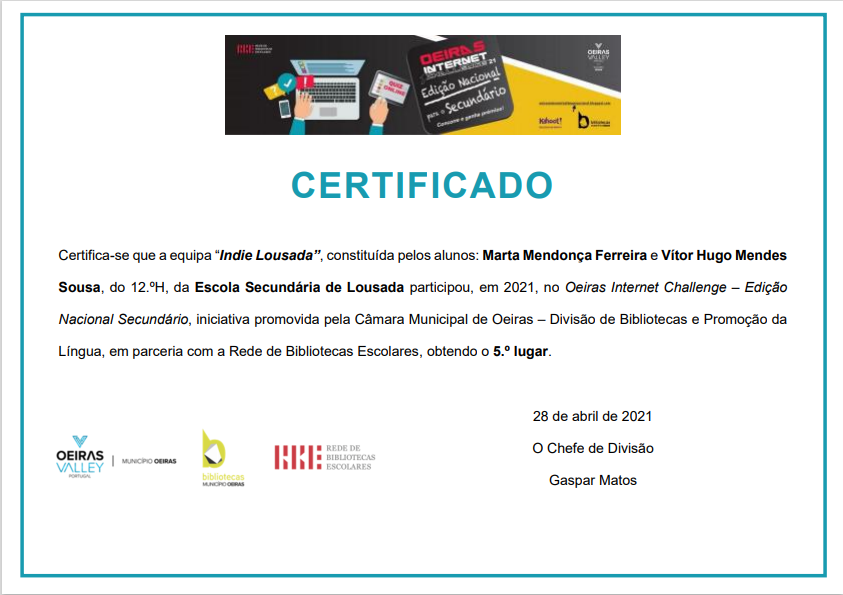 Maio1 Certificado “Oeiras Internet Challenge” Posted on Maio 1, 2021 by AFPA Padrão Parabéns aos nossos alunos!!! Partilha: Partilhar no Facebook (Abre numa nova janela) Facebook Share on X (Abre numa nova janela) X Share on LinkedIn (Abre numa nova janela) LinkedIn Mais Imprimir (Abre numa nova janela) Imprimir Share on WhatsApp (Abre numa nova janela) WhatsApp Email a link to a friend (Abre numa nova janela) E-mail Gosto Carregando... Relacionado