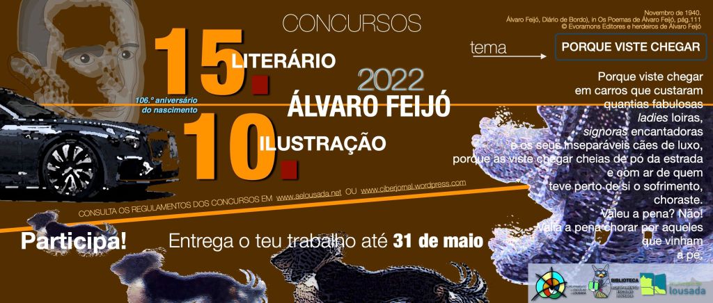 A Biblioteca do Agrupamento de Escolas de Lousada, dinamiza pelo 15.º ano consecutivo os concursos literário e de ilustração “Álvaro Feijó’22” para toda a população escolar do concelho de Lousada, no âmbito da homenagem ao poeta lousadense.