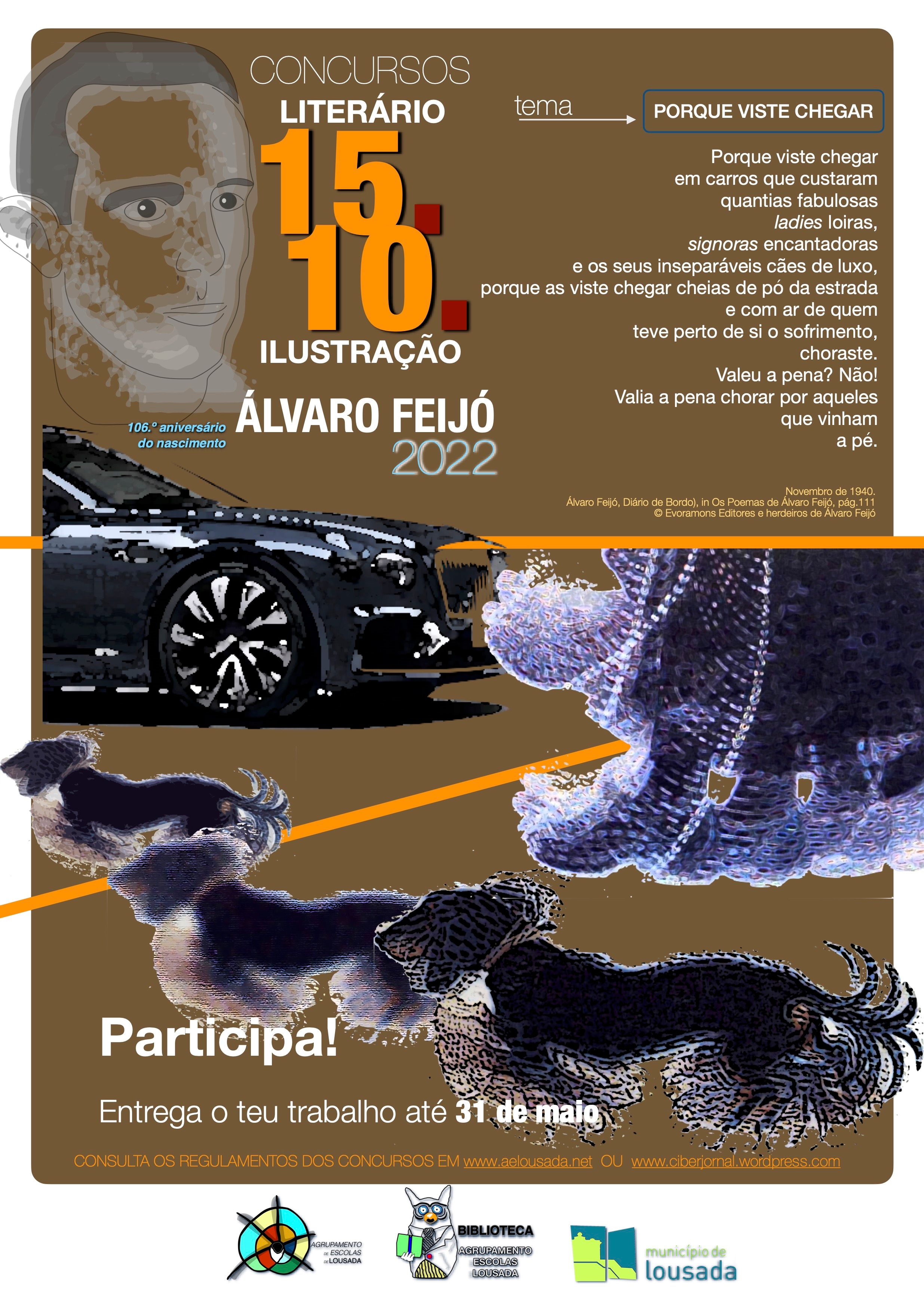 A Biblioteca do Agrupamento de Escolas de Lousada, dinamiza pelo 15.º ano consecutivo os concursos literário e de ilustração “Álvaro Feijó’22” para toda a população escolar do concelho de Lousada, no âmbito da homenagem ao poeta lousadense.