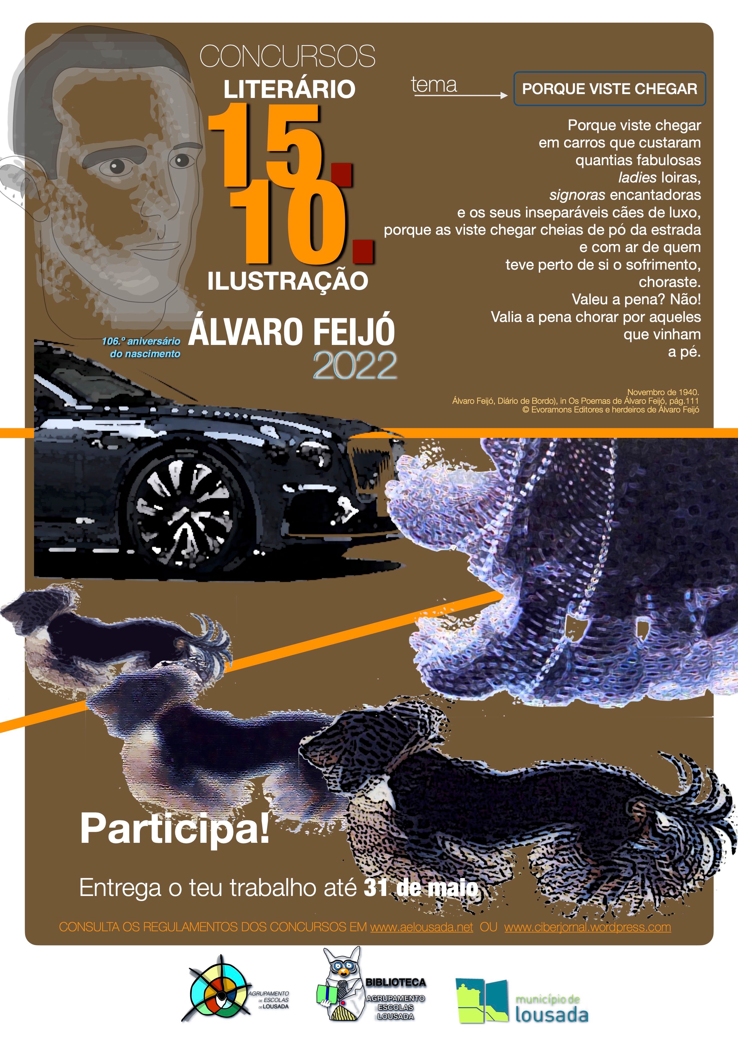 A Biblioteca do Agrupamento de Escolas de Lousada, dinamiza pelo 15.º ano consecutivo osconcursos literárioe deilustração “Álvaro Feijó’22”para toda a população escolar do concelho de Lousada, no âmbito da homenagem ao poeta lousadense.