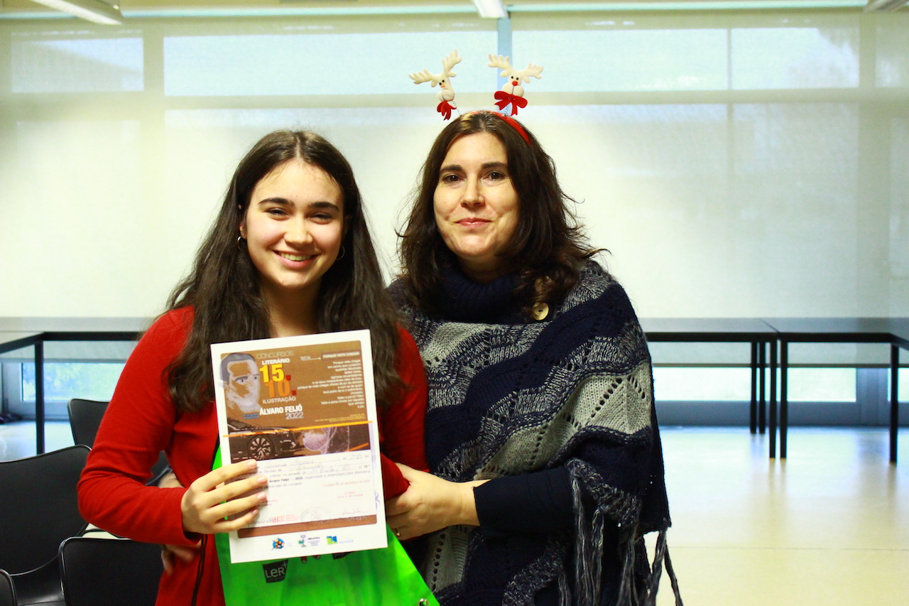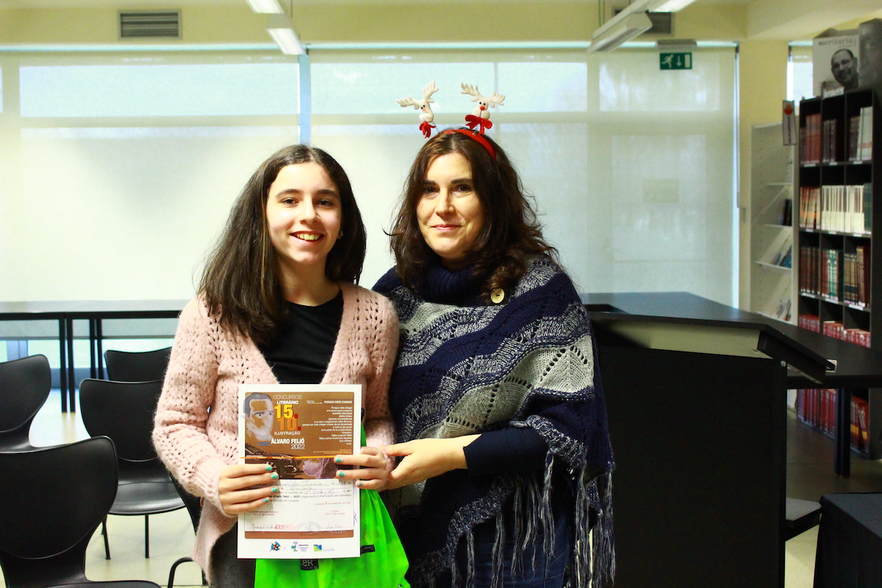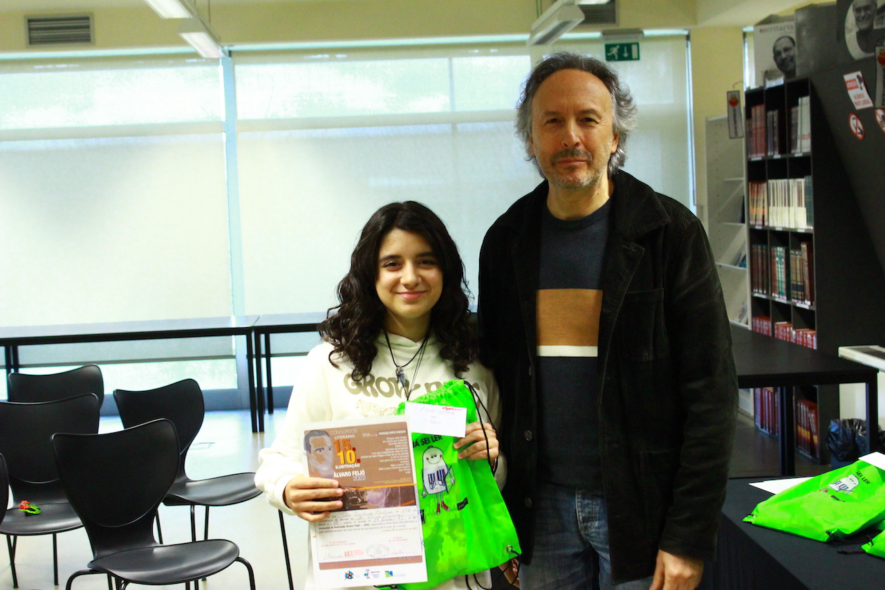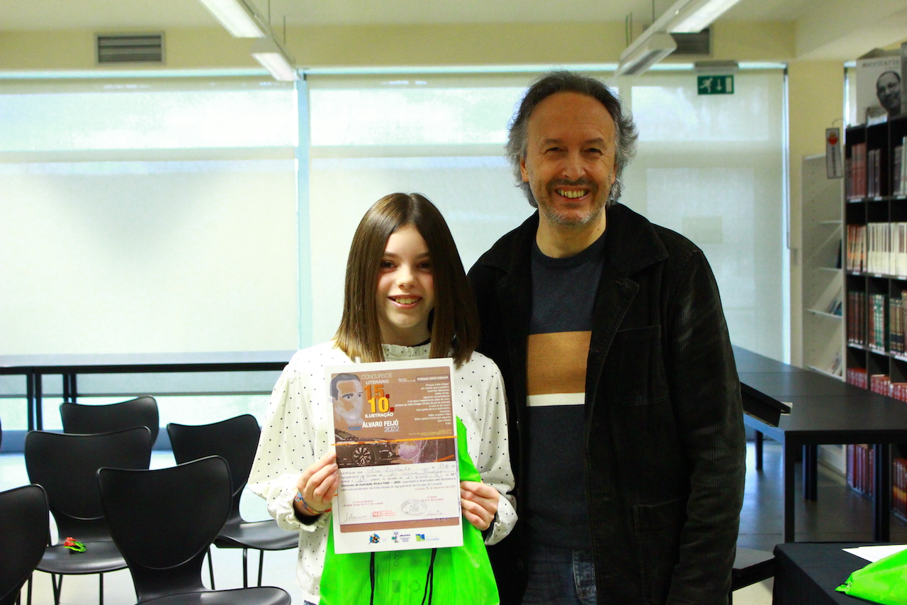 Hoje, sexta-feira, pelas 14.30H, decorreu a entrega de prémios dos concursos Álvaro Feijó, dinamizados pela Biblioteca, em articulação com os professores de Português e de Artes Visuais.