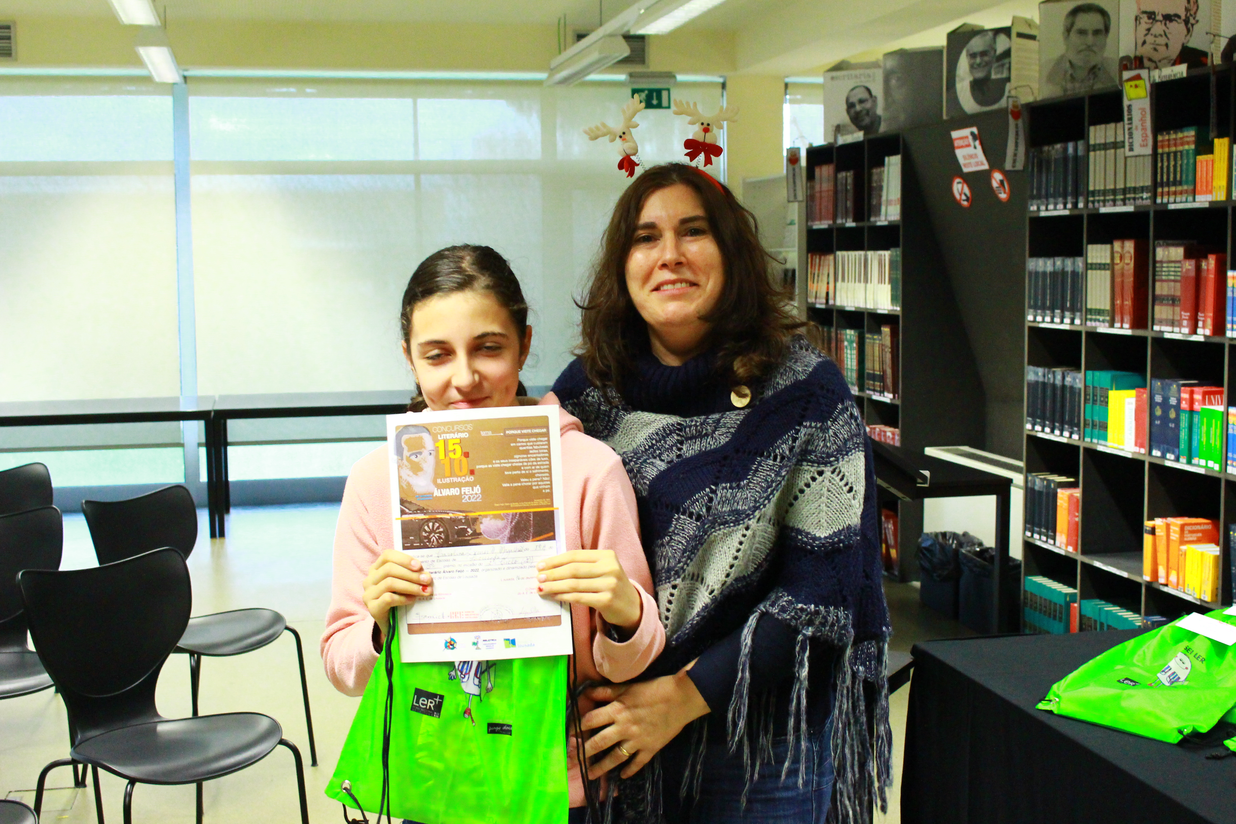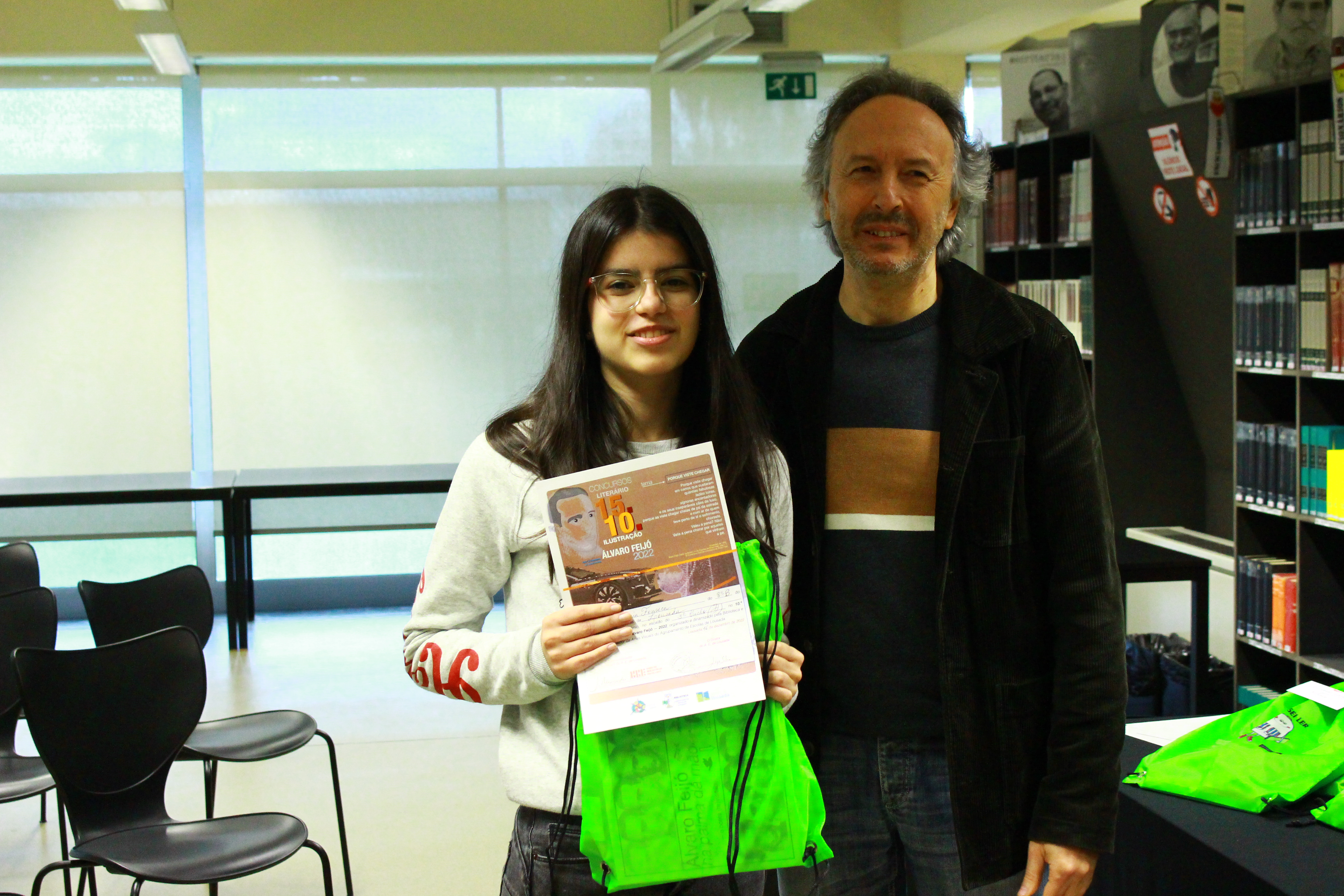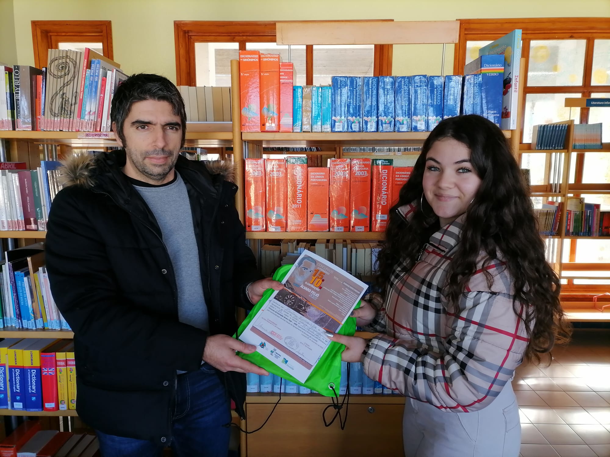 Hoje, sexta-feira, pelas 14.30H, decorreu a entrega de prémios dos concursos Álvaro Feijó, dinamizados pela Biblioteca, em articulação com os professores de Português e de Artes Visuais.