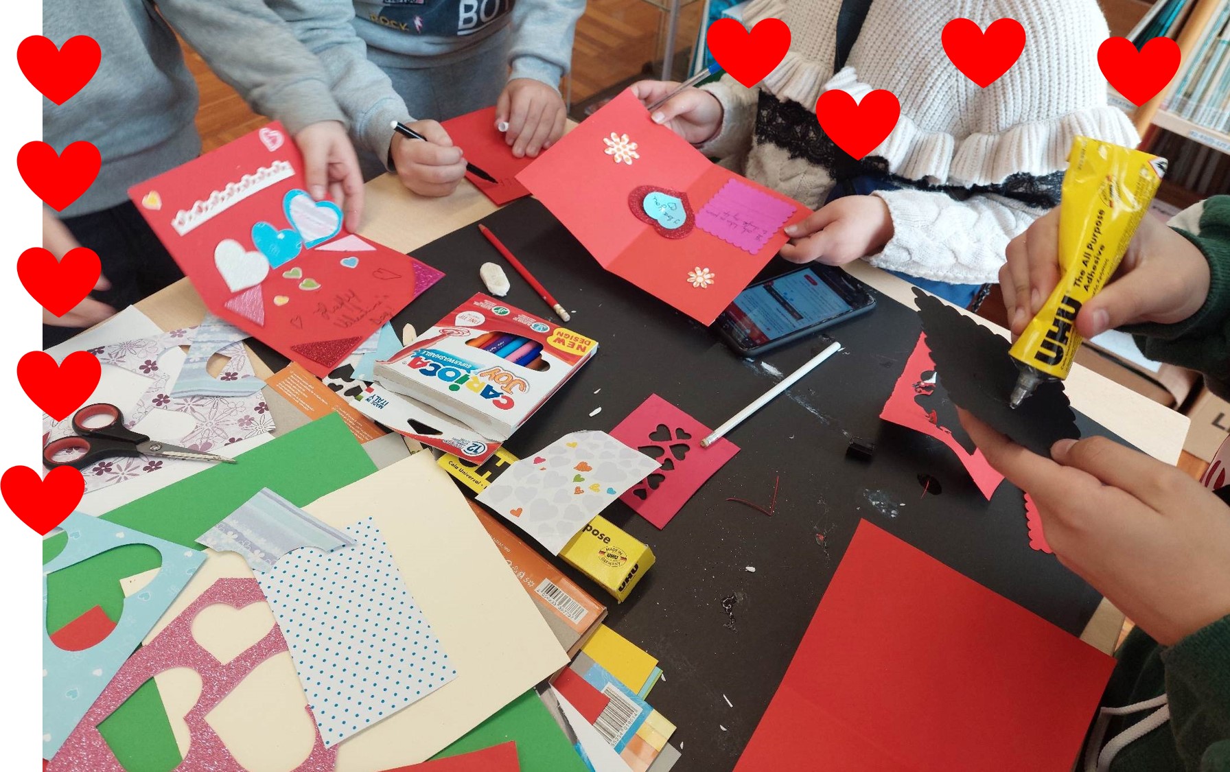 Decorreu ontem, dia 14 de fevereiro, na Biblioteca da EBLC, um “Workshop de postais de amor/amizade” inserido nas atividades da “Semana dos Afetos”.