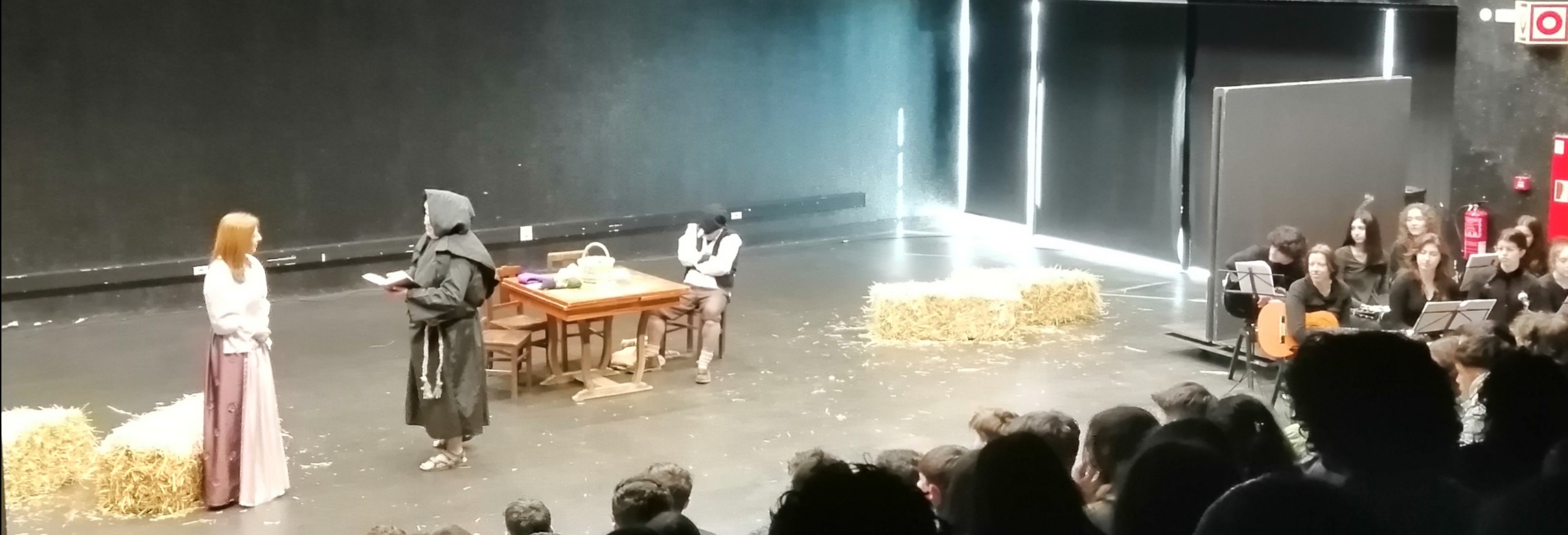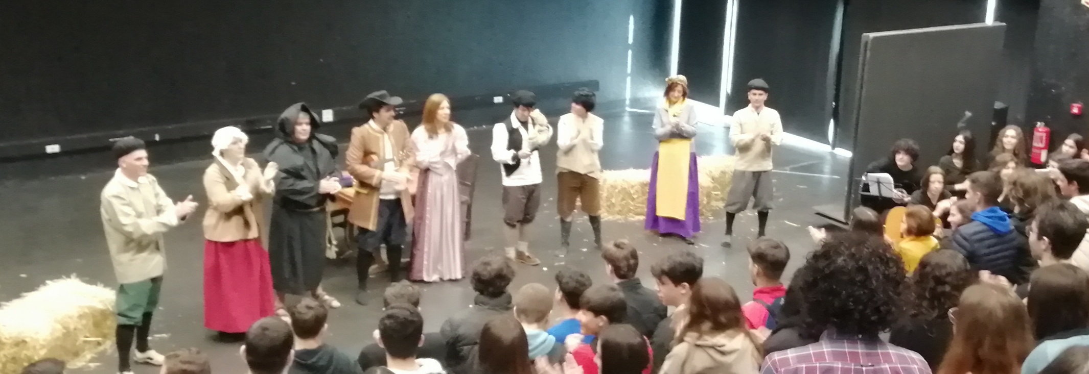 Hoje, os alunos do 10.º ano assistiram a uma representação da peça “Farsa de Inês Pereira”, de Gil Vicente. Uma representação diferente. Foram os professores que representaram para os seus alunos. Os Prof & Trolls.