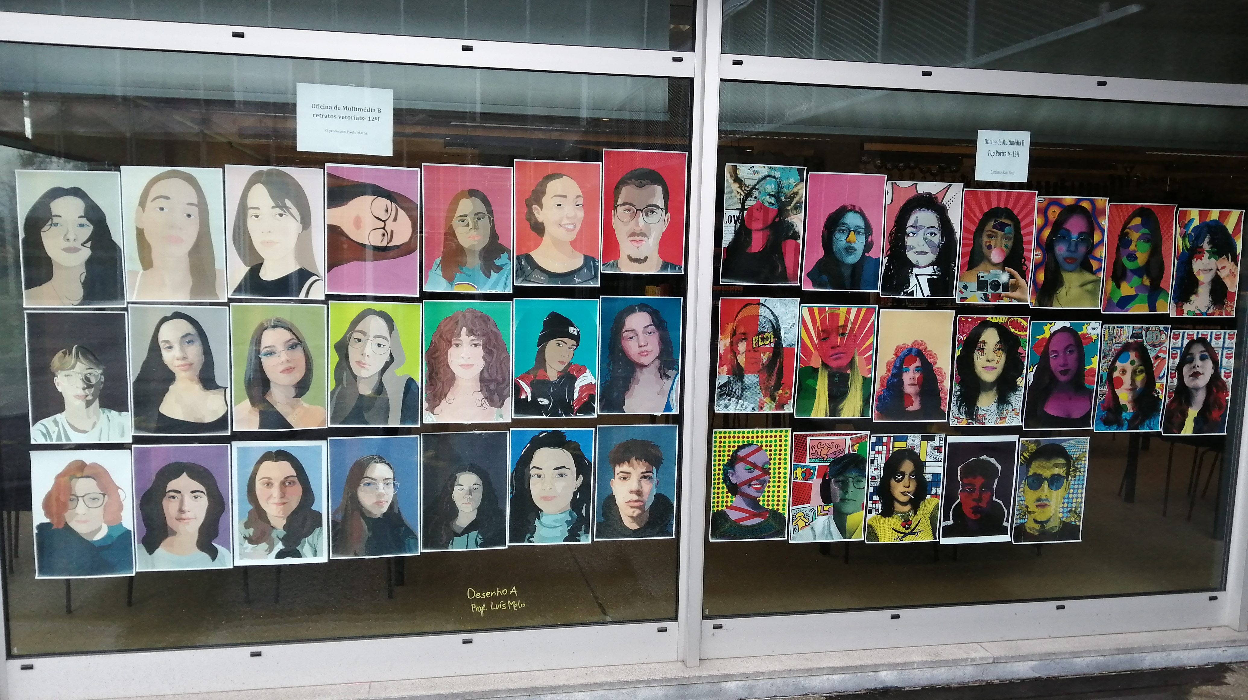 Os alunos de Oficina de Multimédia, do 12.ºI, e sob a orientação do professor Paulo Matos, reproduziram retratos com influência da Arte Pop (do inglês Pop Art), e expuseram nas vitrinas da Biblioteca da ESL.