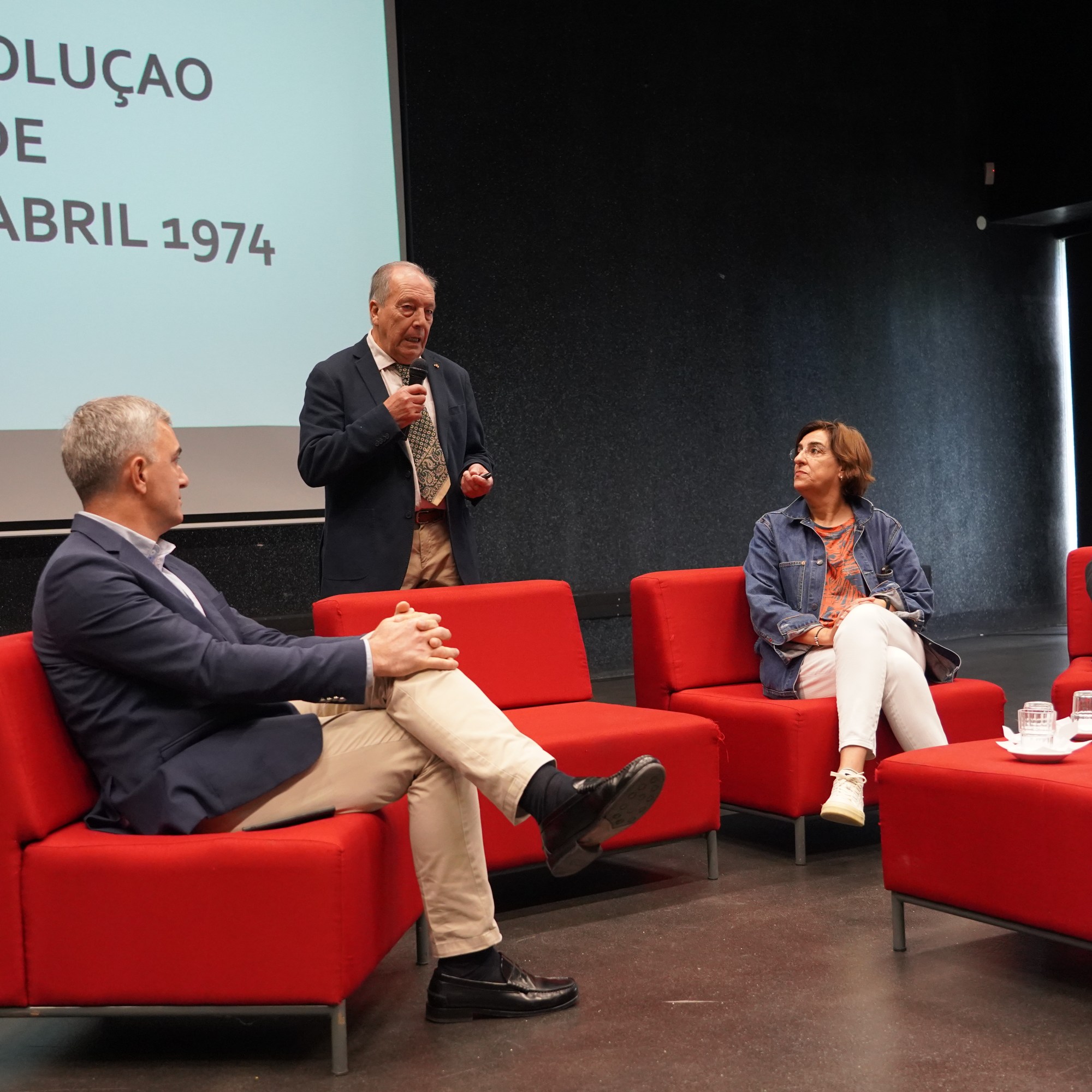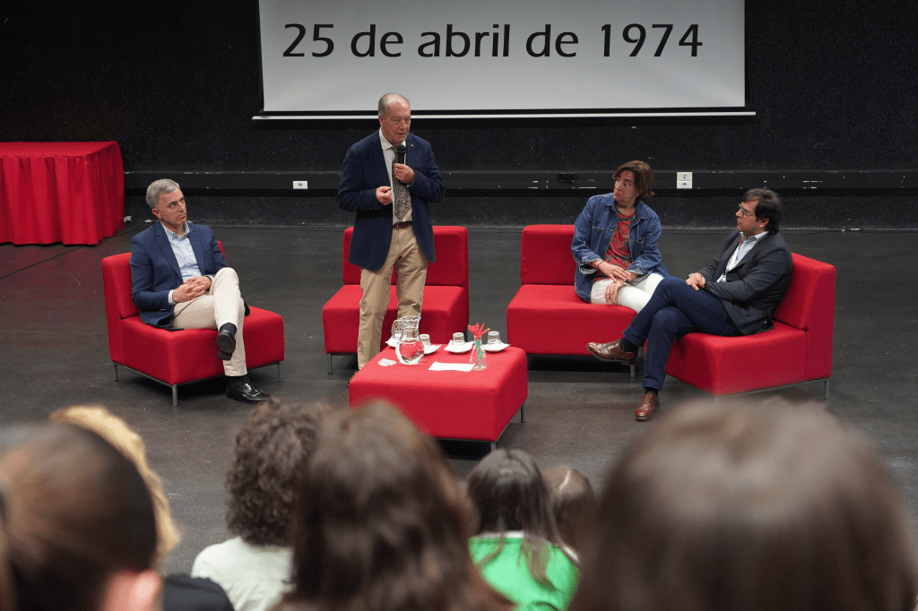 O Sr. Coronel conversou com os alunos sobre a sua juventude, a escolha da sua carreira militar; com apenas 22 anos cumpriu a sua primeira comissão de serviço em África, salientou o desgaste das forças militares portuguesas no teatro das guerras coloniais durante 13 anos, a coragem dos soldados portugueses, a consciência da injustiça da guerra e a preparação da revolução na clandestinidade, desde junho de 1973.
