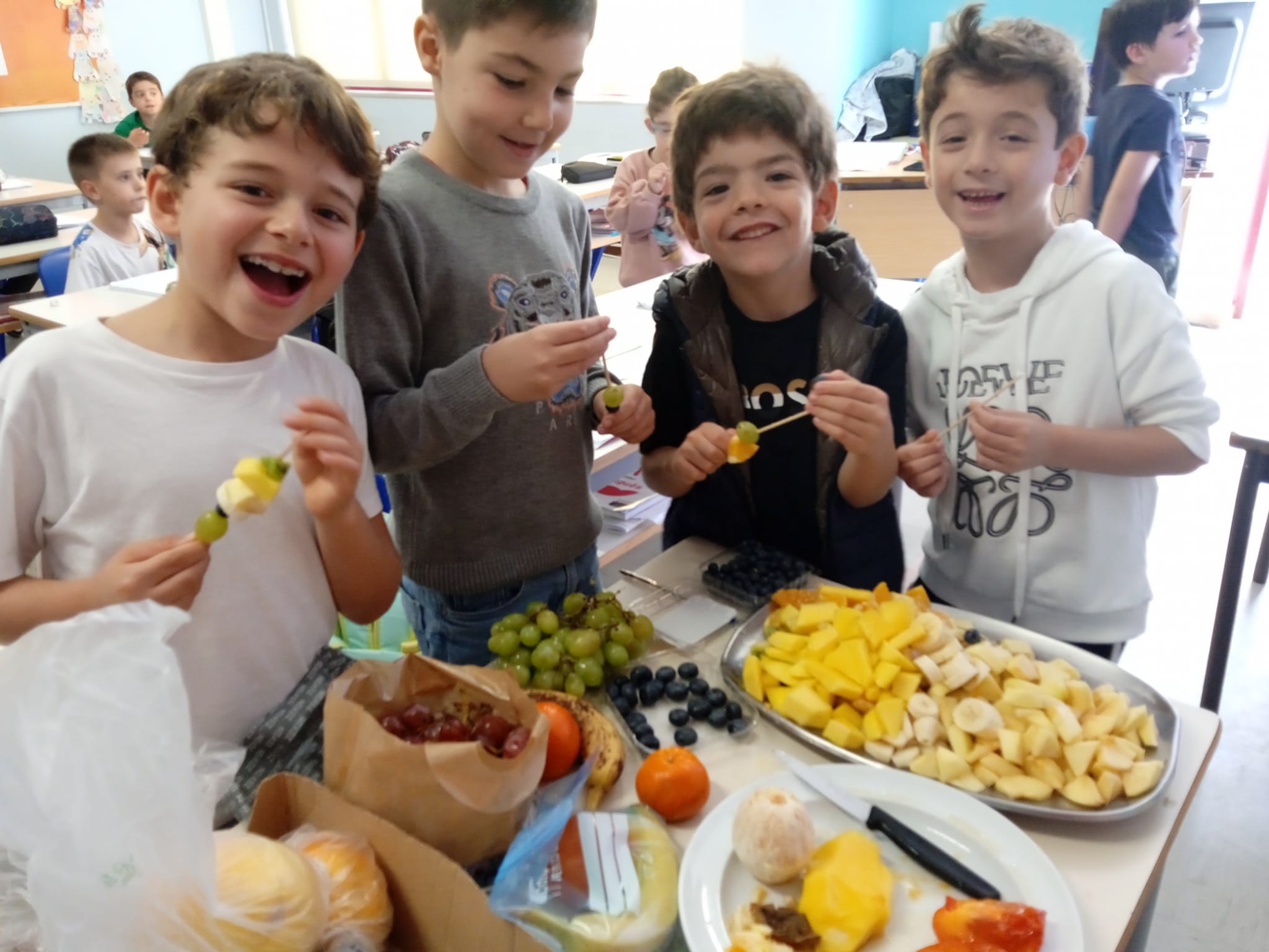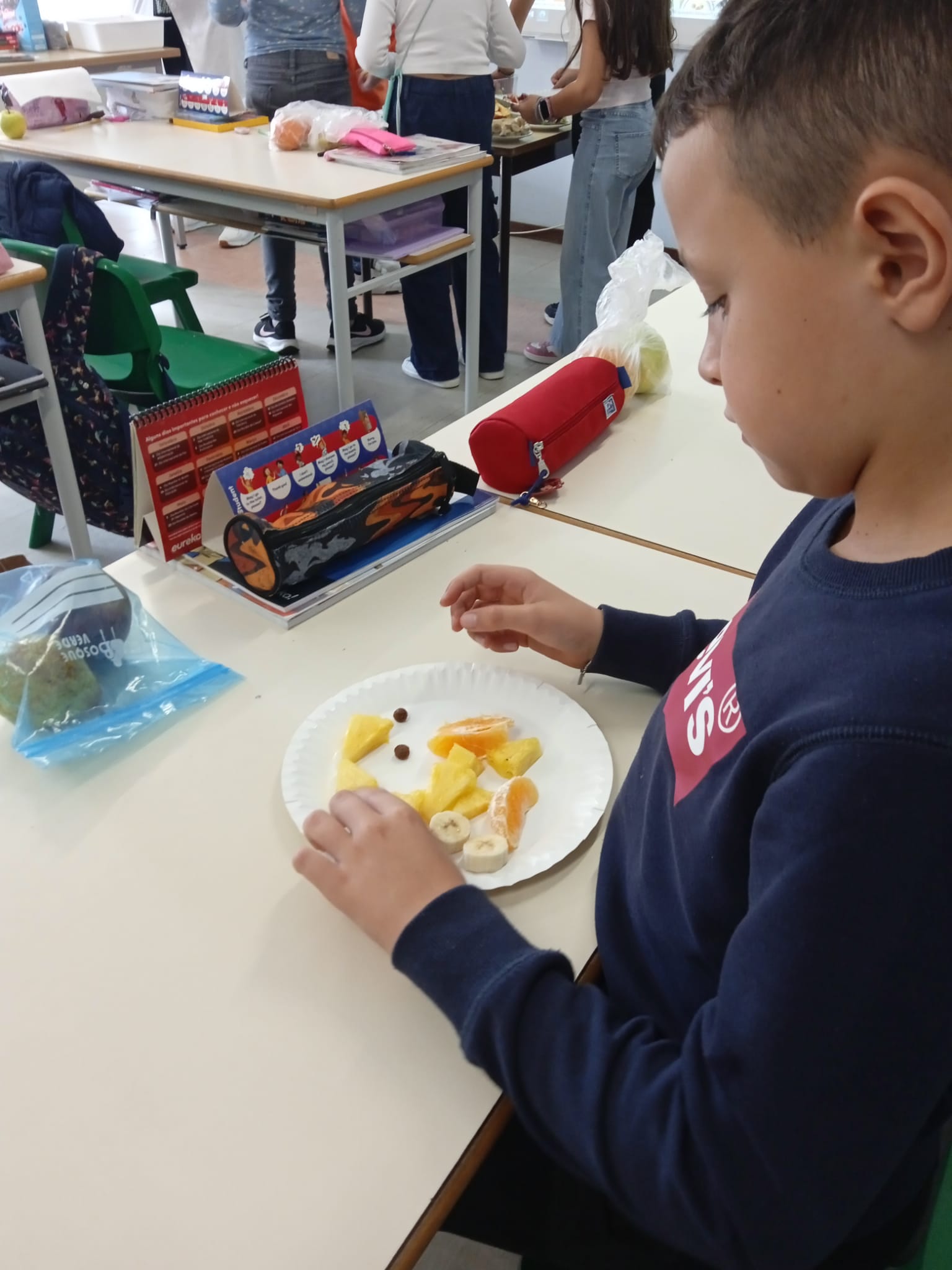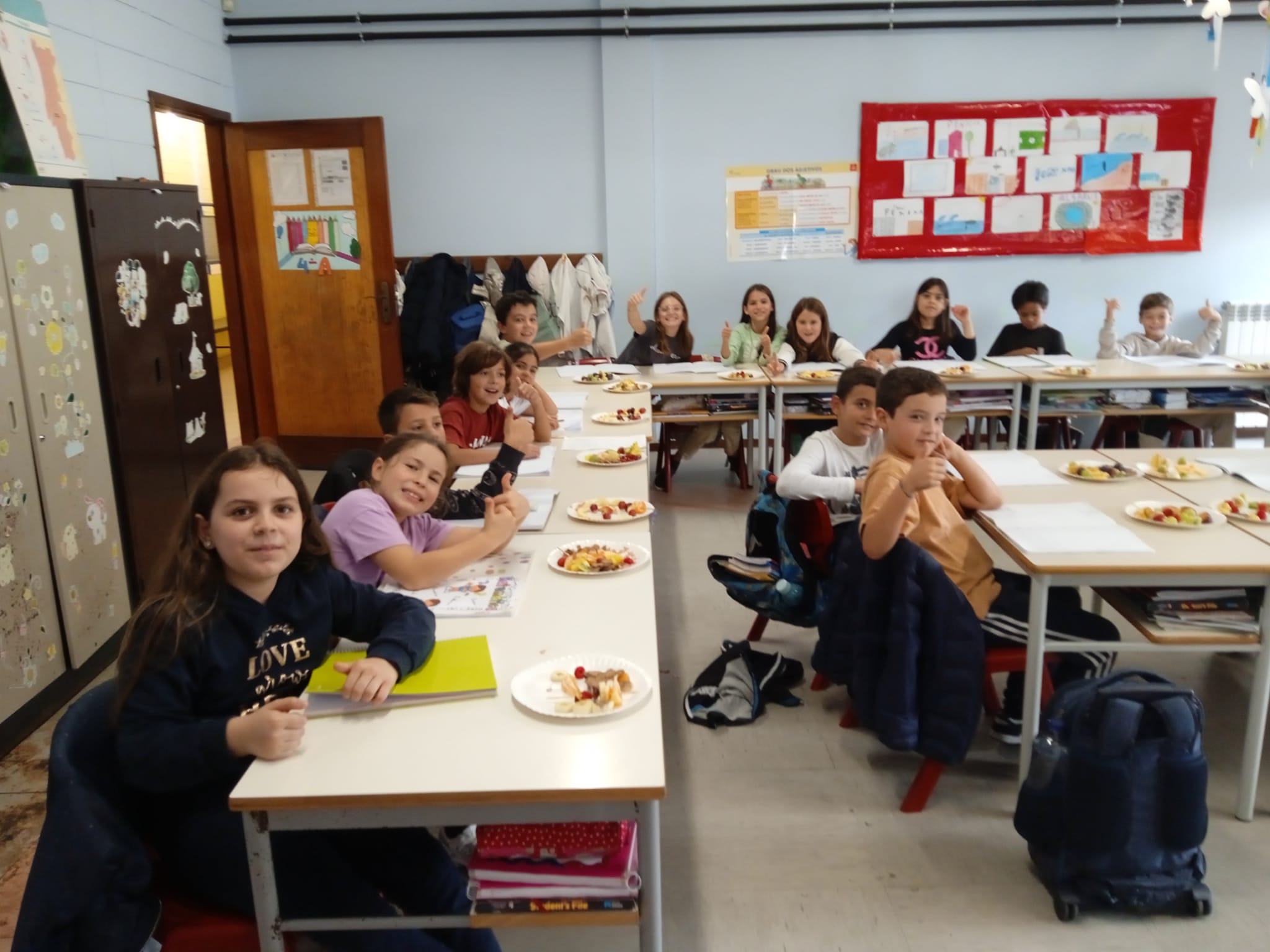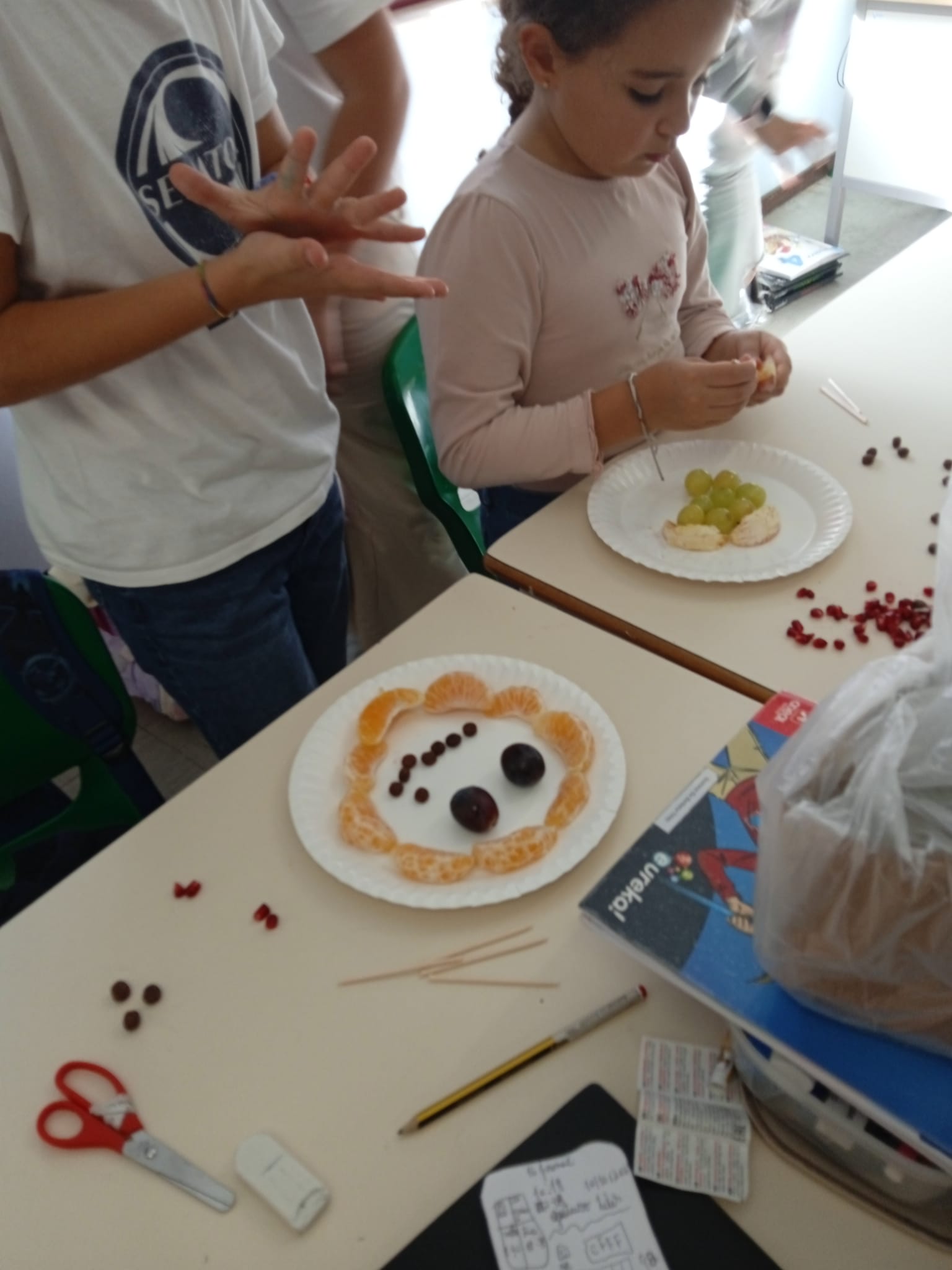 Partindo do tema “comer fruta faz bem à saúde”, e dando asas à imaginação, os alunos confecionarem a sua própria sobremesa saudável, realizando formas diferentes de apresentar as frutas no seu prato.