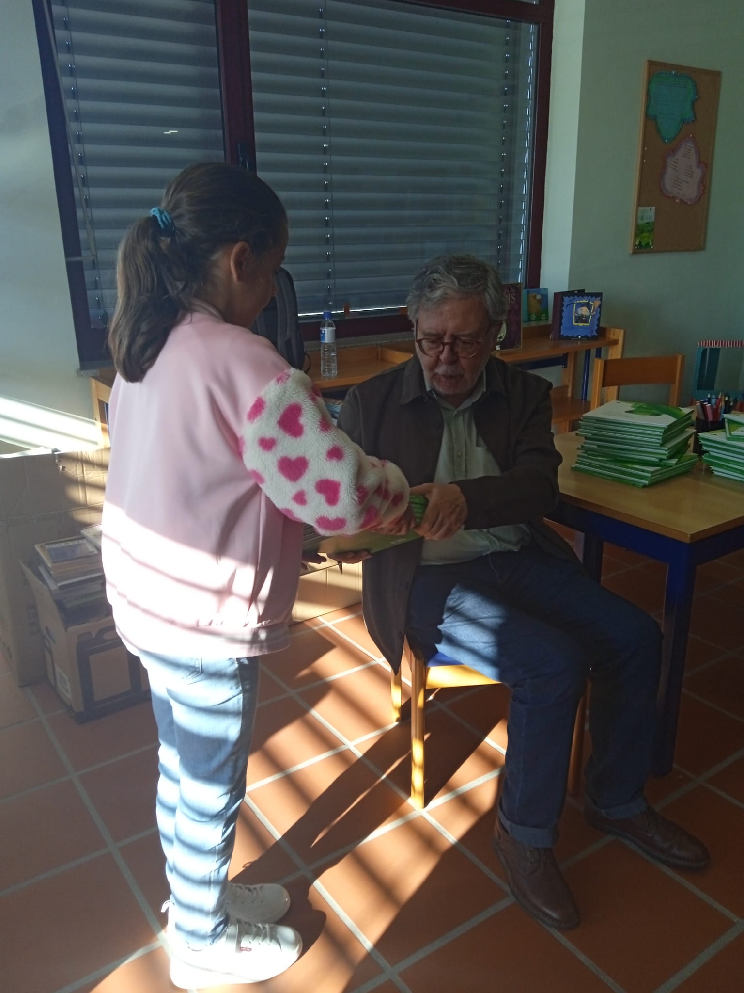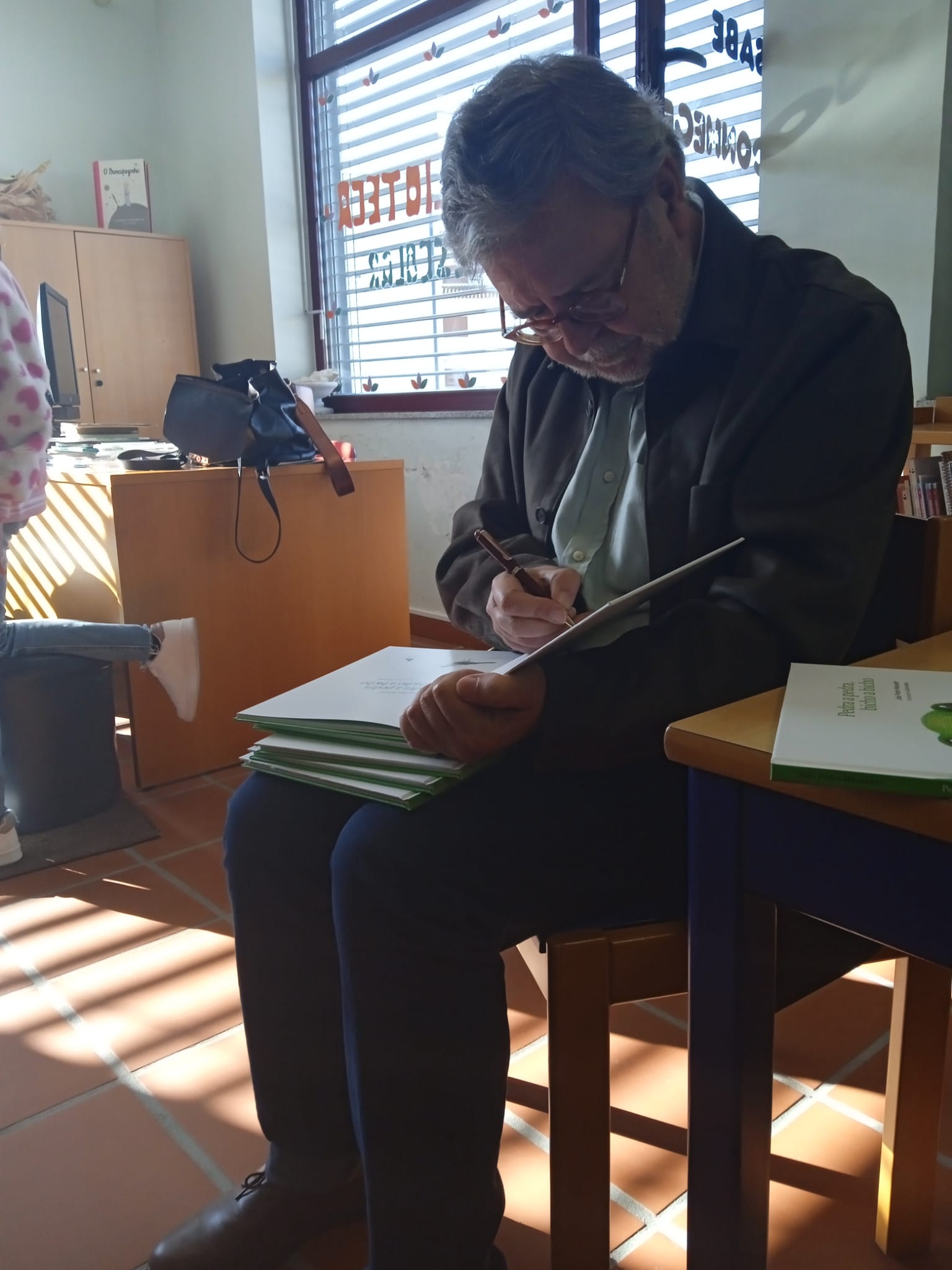 João Pedro Mésseder, escritor, e Carla Anjos, ilustradora, estiveram nas bibliotecas das EB de Boim e de Silvares para apresentarem às turmas do 4.º ano, o livro “Pedra a pedra, bicho a bicho” que, na modalidade de poesia, integra composições sobre animais e rochas, rios, paisagens e pessoas.