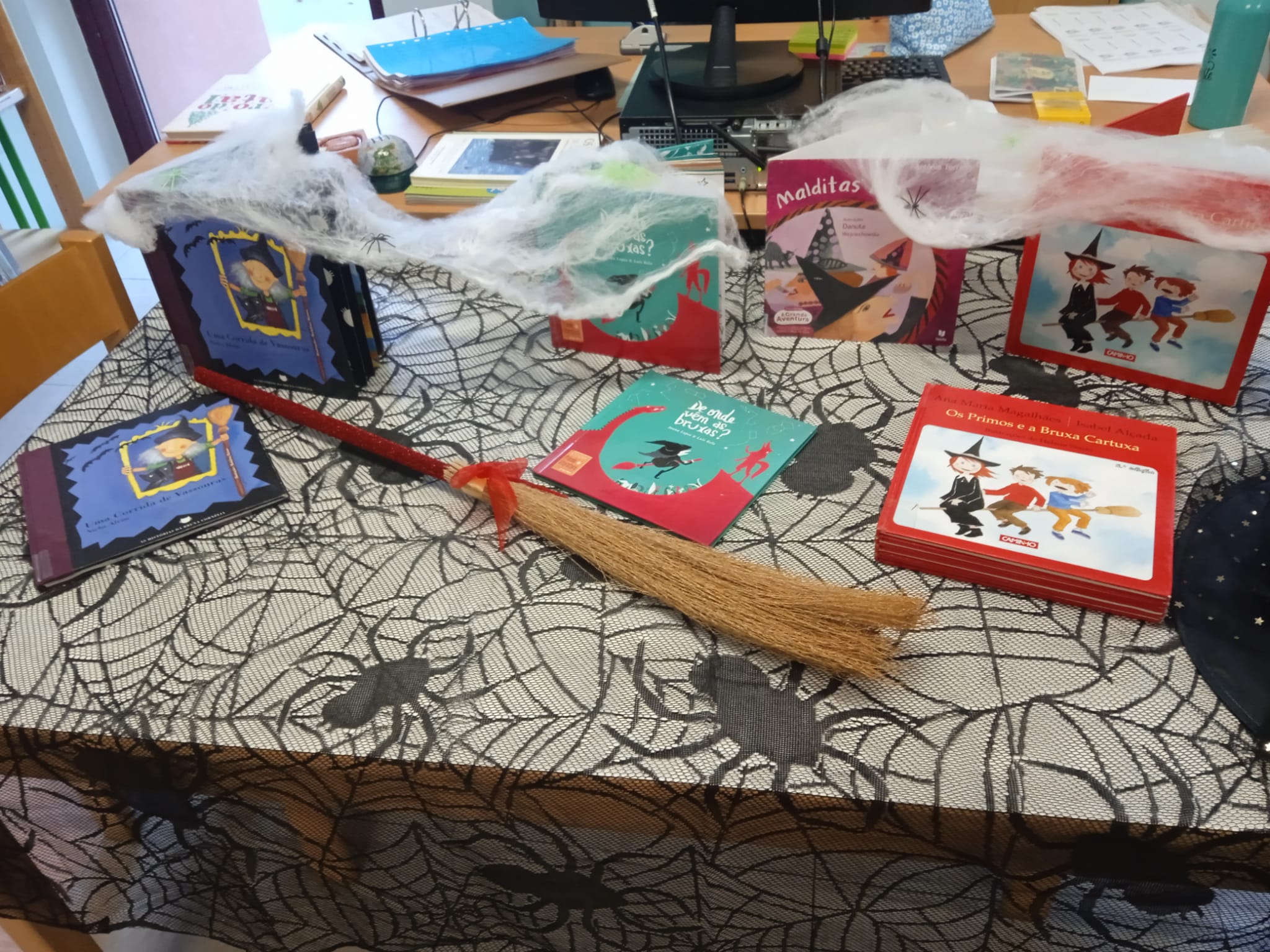 A Professora Bibliotecária montou uma exposição na Biblioteca, com o objetivo de celebrarem esta data tão tradicional 🎃 na escola.