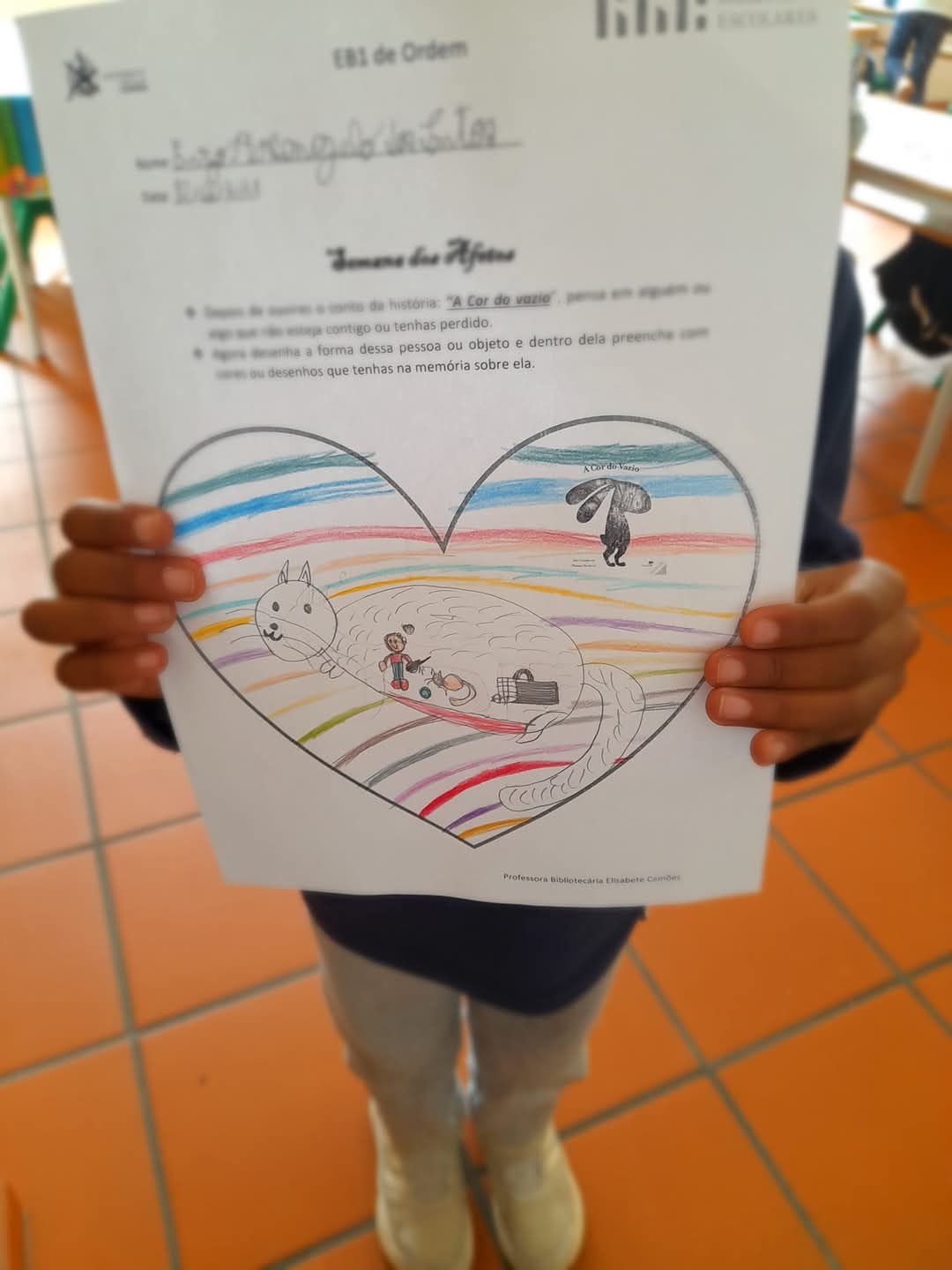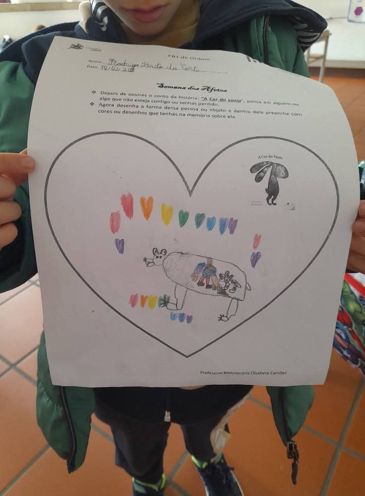 Para finalizar a atividade os professores levaram uma folha de registo, onde os alunos desenharam a sombra de quem têm saudade, preenchendo-a com cores ou desenhos das boas memórias que essa pessoa deixou nos seus corações.