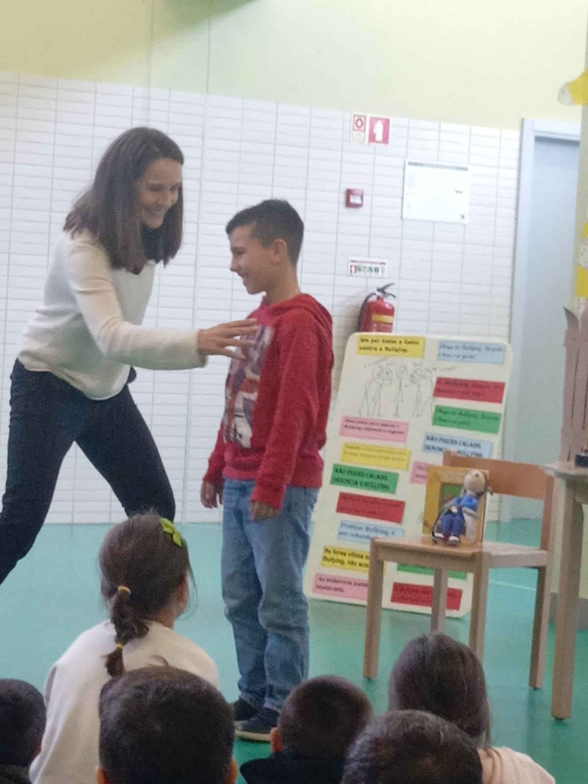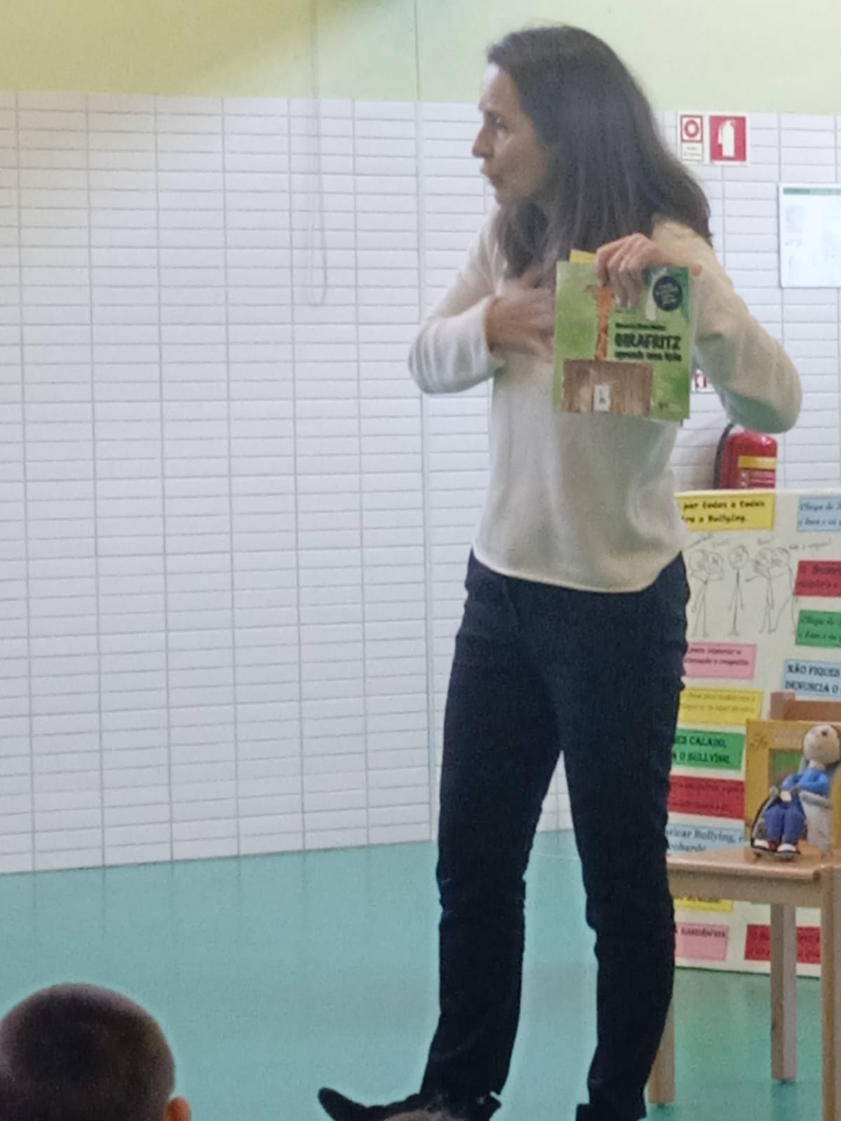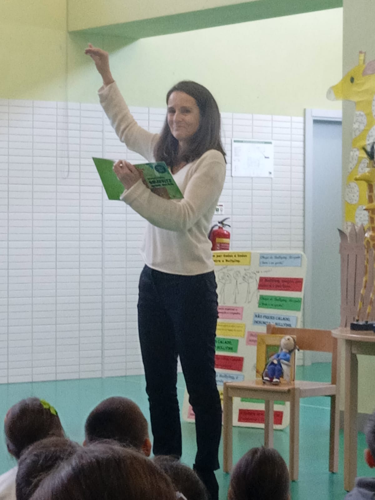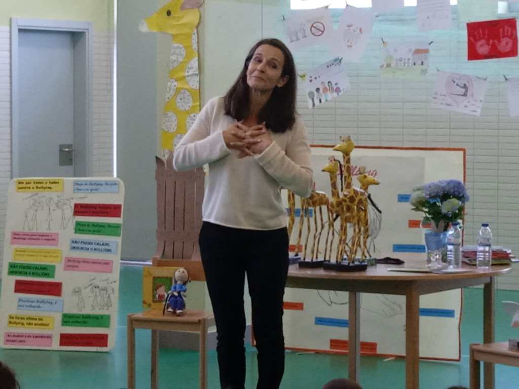 Este foi o mote que deu início à apresentação da escritora Manuela Mota Ribeiro para o seu livro anti bullying “Girafritz“, na EB1 de Cristelos, na passada quinta-feira, dia 27 de março.