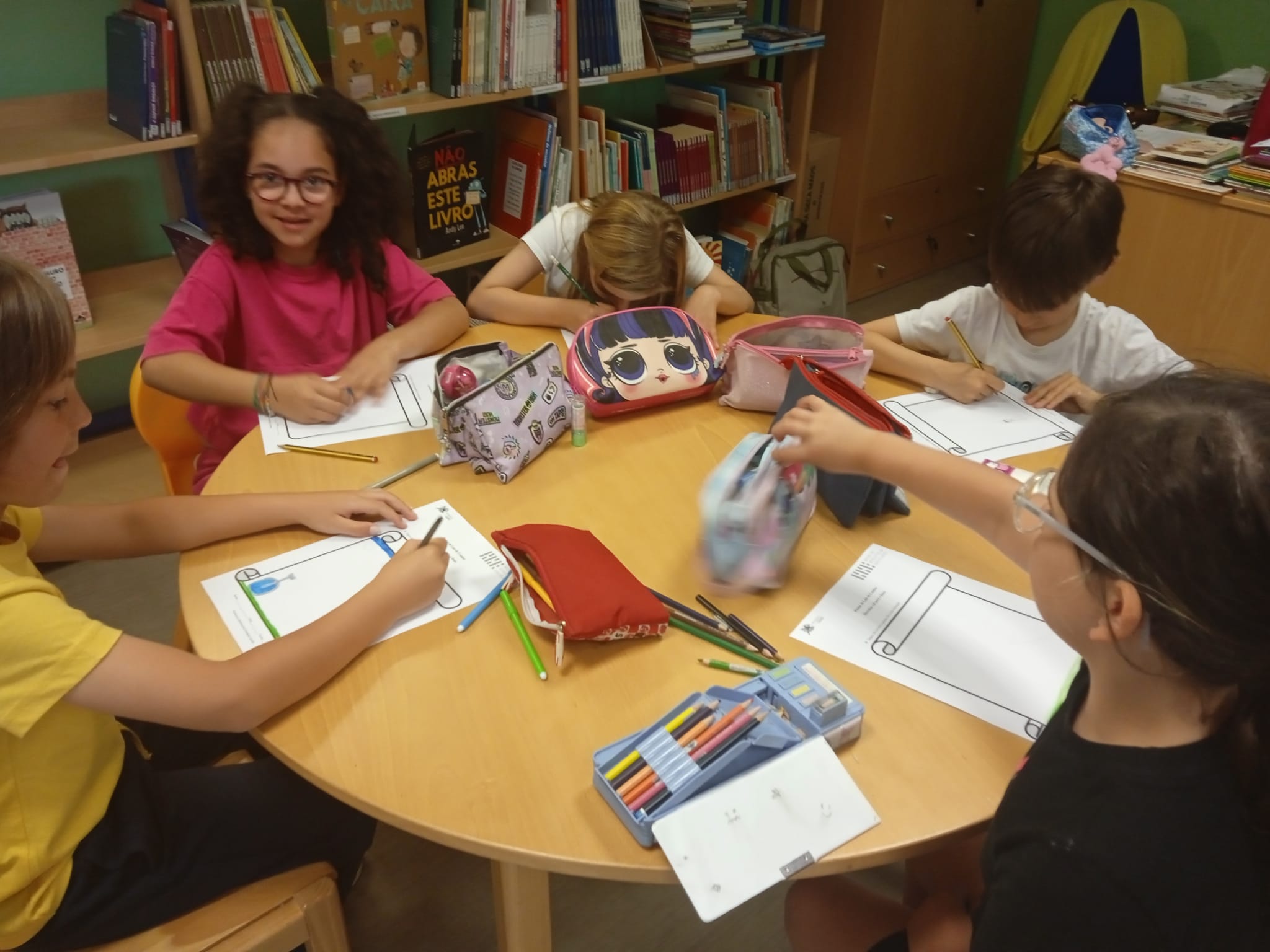 A Professora Bibliotecária do 1.º ciclo promoveu atividades na Biblioteca de todas as escolas. Os alunos tiveram oportunidade de a ouvir recitar o poema “Descalça vai para a fonte”, de Luís Vaz de Camões. De seguida, ouviram o poema, cantado pela nossa Amália Rodrigues e, depois, fizeram a ilustração da personagem Leonor.