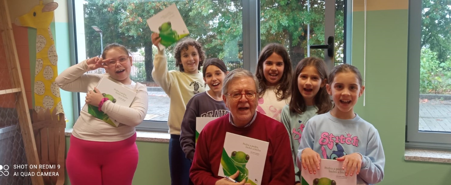 Desta forma, despertamos a imaginação e enriquecemos o vocabulário… No âmbito do Plano Municipal de Leitura “Ler Lousada”, o município oferece todos os anos, a todos os alunos de quarto ano deste concelho um livro. “Pedra a pedra, bicho a bicho” foi o livro oferecido este ano. Esta oferta vem sempre acompanhada de algo muito valioso e inesquecível para estes alunos.