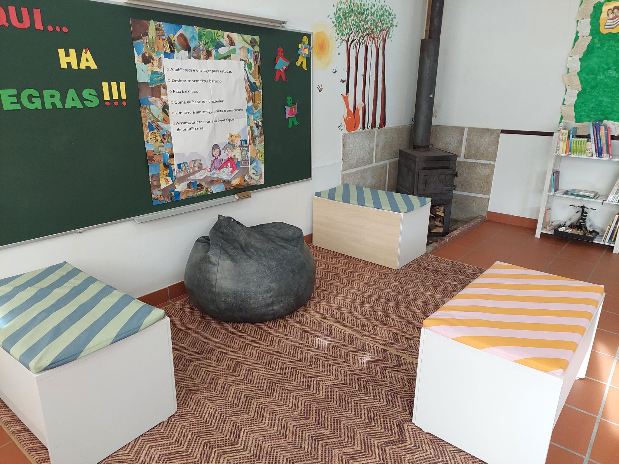 Conquistada a candidatura, avançou-se para essa intervenção. Apostou-se na reorganização do espaço dedicado, com novas estantes, puffs, tapetes e, para grande contentamento de todos os alunos, uma grande atualização do acervo. Com esta nova configuração, ficou garantido o acesso permanente ao livro a todos os alunos.
