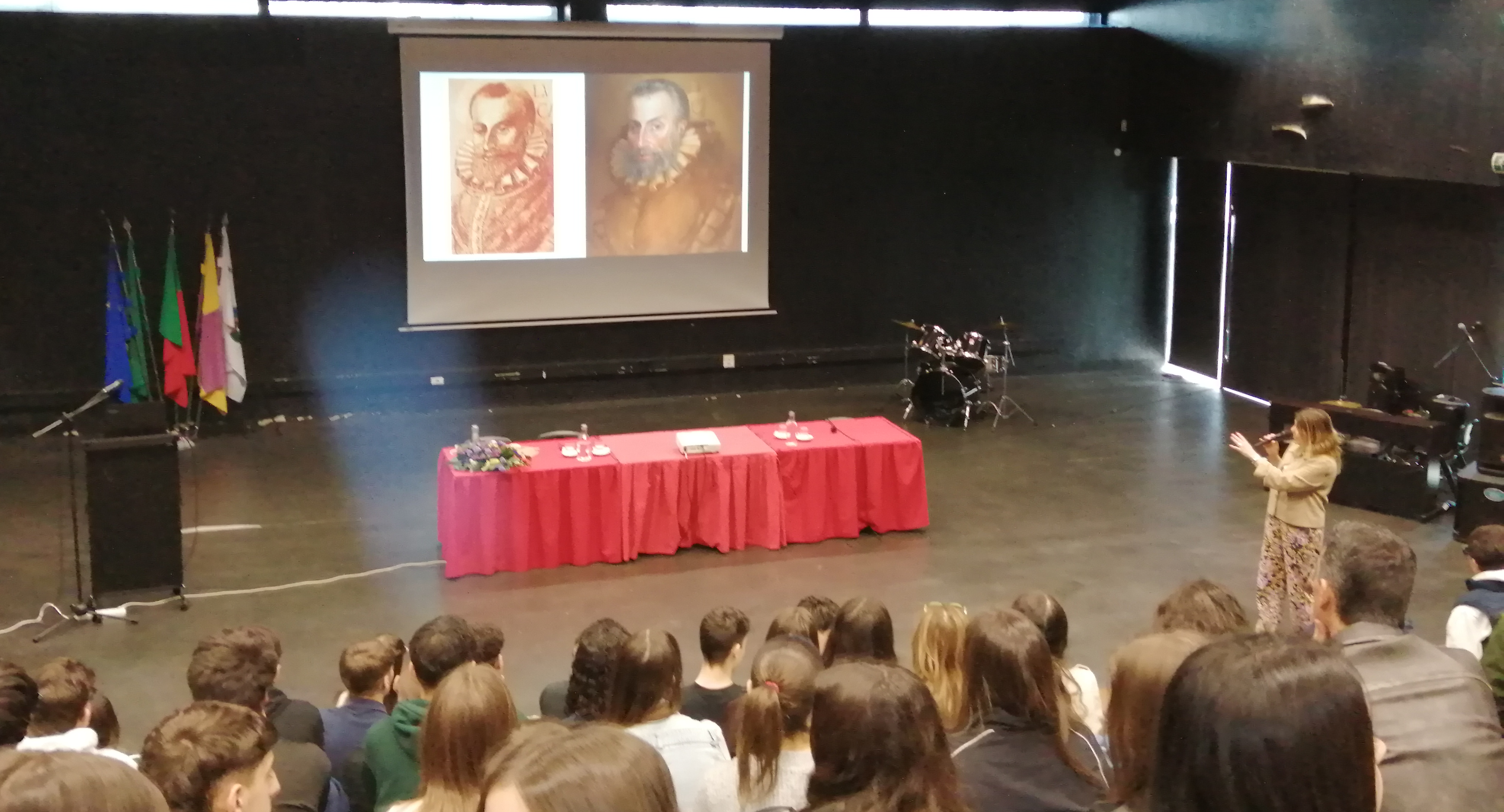 O auditório da Escola Secundária de Lousada recebeu, hoje, a escritora Isabel Rio Novo para uma palestra dedicada à biografia de Luís de Camões, dirigida aos alunos do 10.º ano, integrada nas atividades da Semana da Leitura.