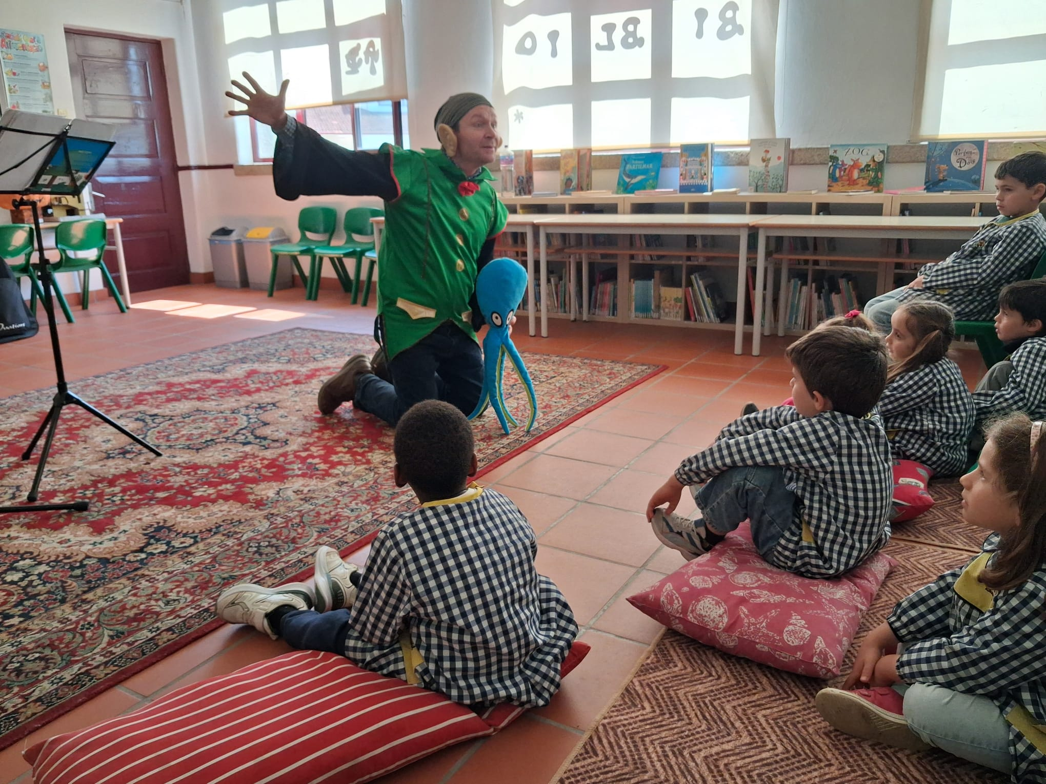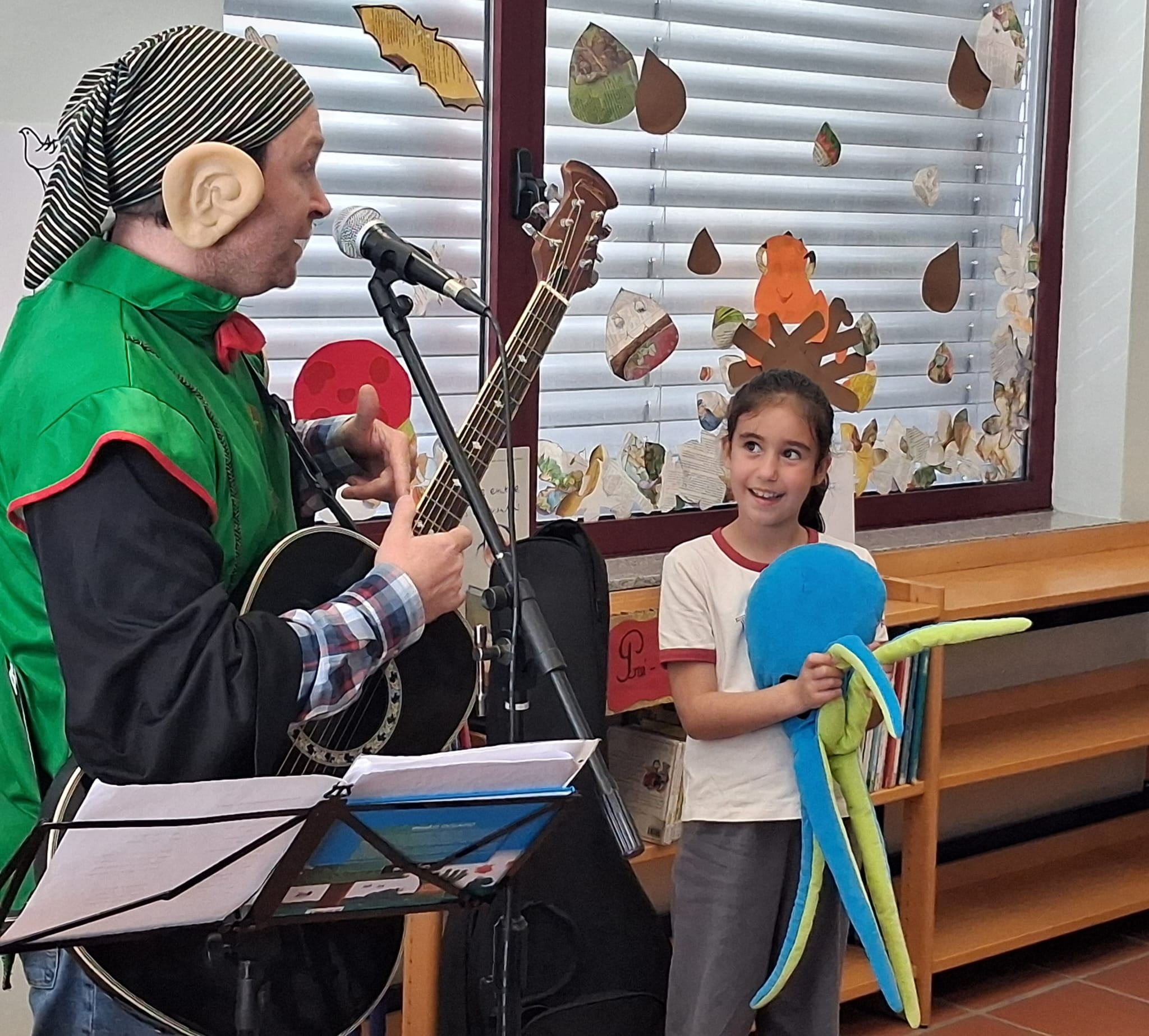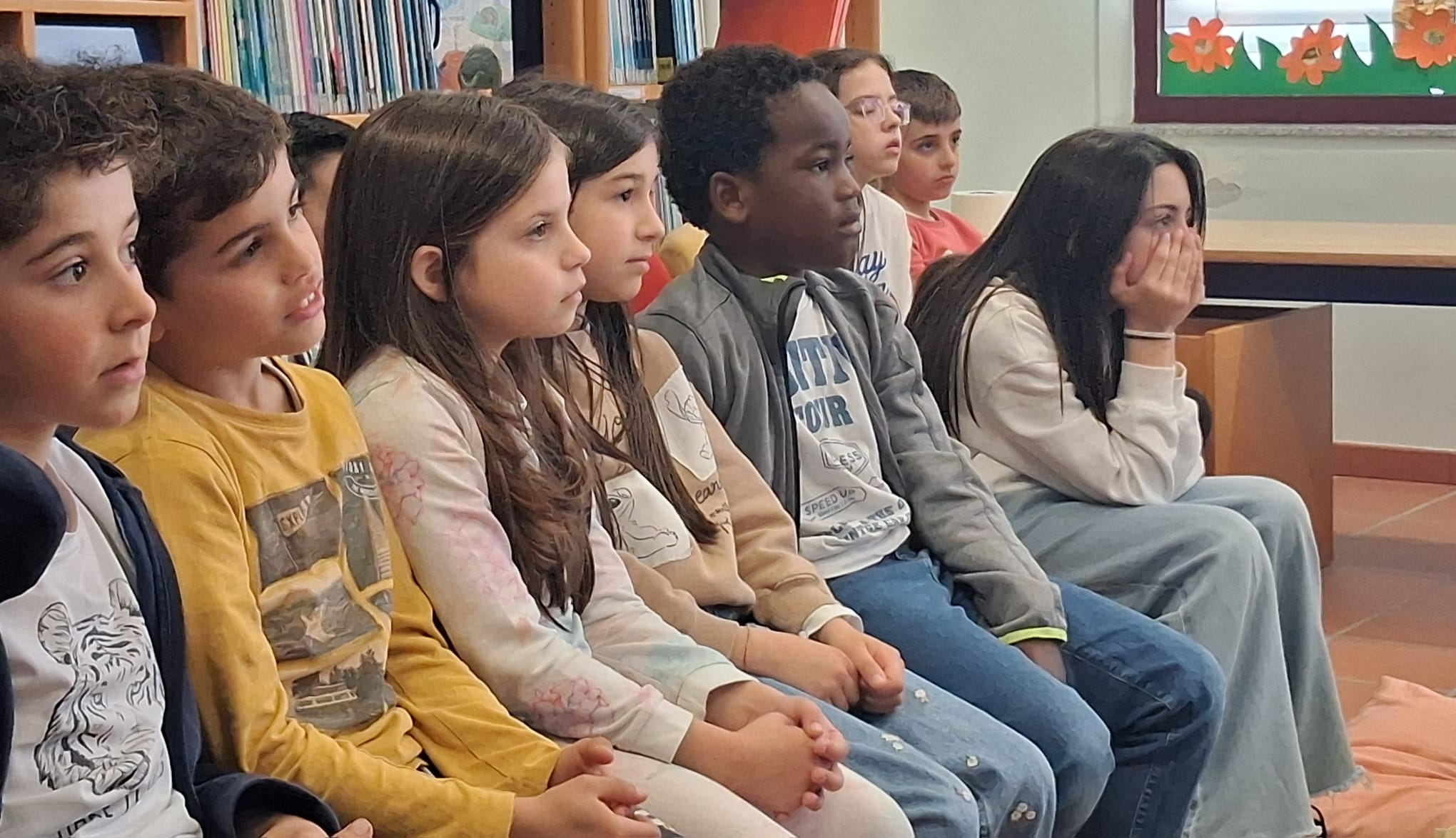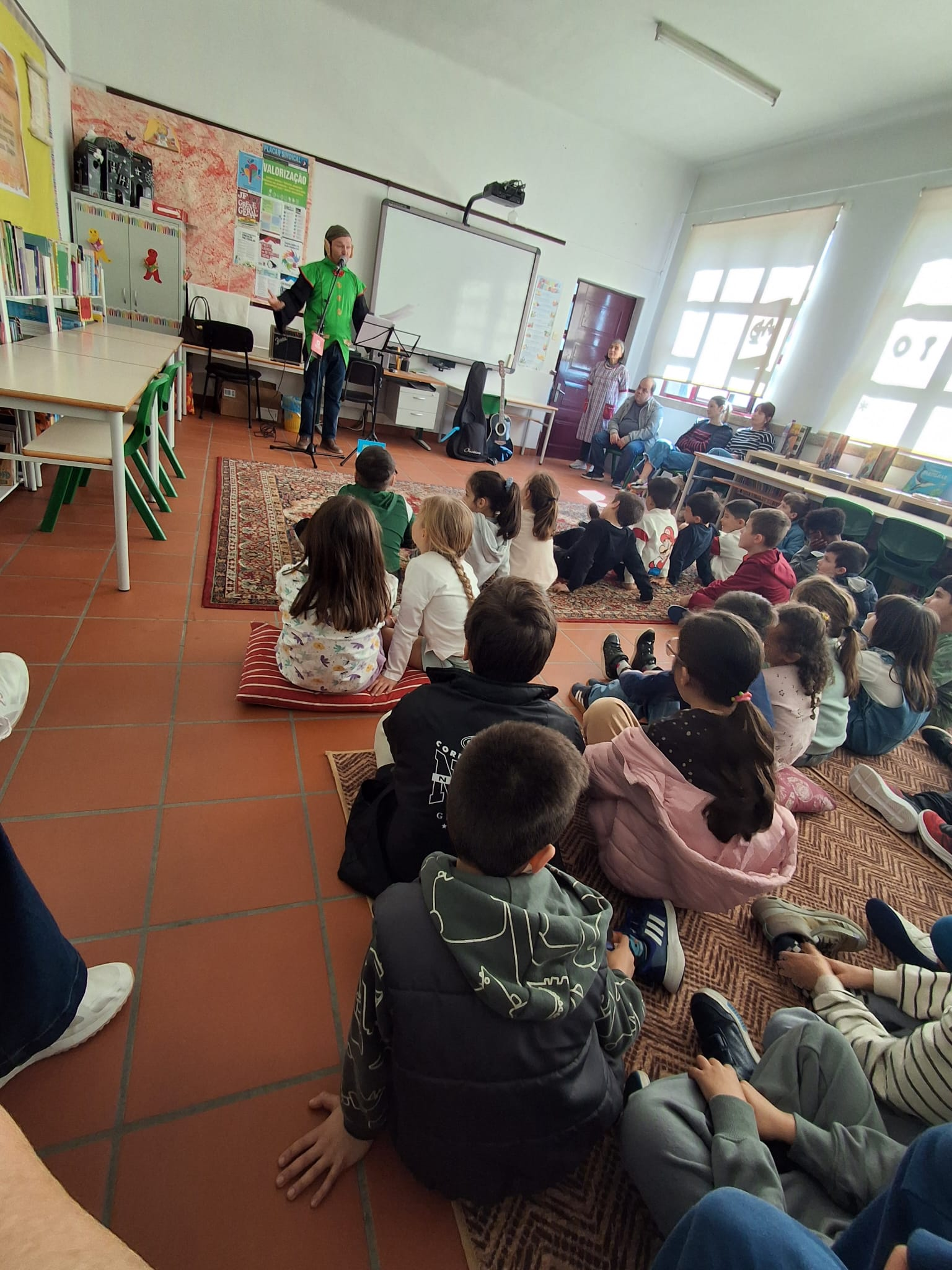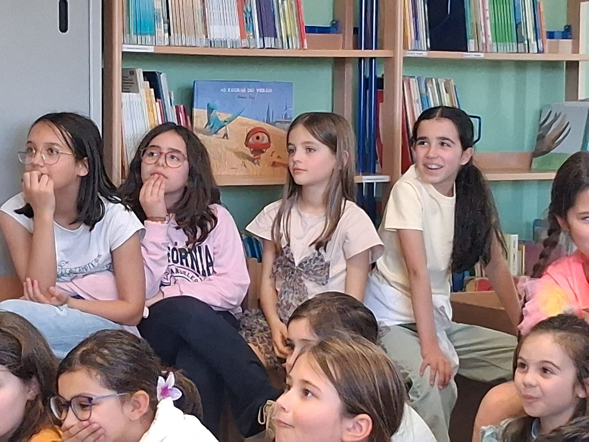 A sessão foi ainda enriquecida por momentos musicais únicos, acompanhados pela sonoridade calorosa e acolhedora da viola. As músicas originais e alegres criaram uma atmosfera de partilha e entusiasmo, permitindo que os alunos se envolvessem ativamente, quer nas histórias, quer nas canções, tornando a experiência ainda mais memorável.