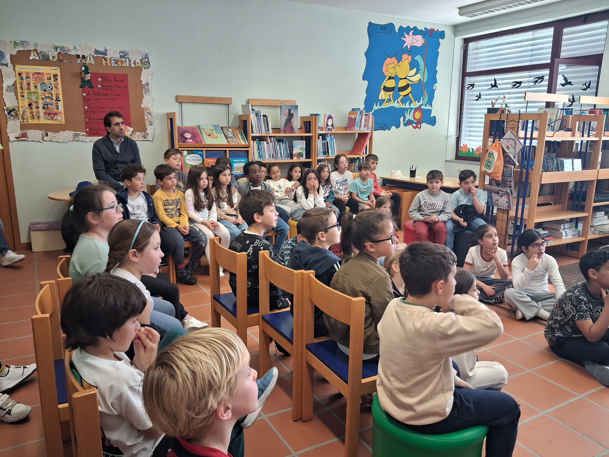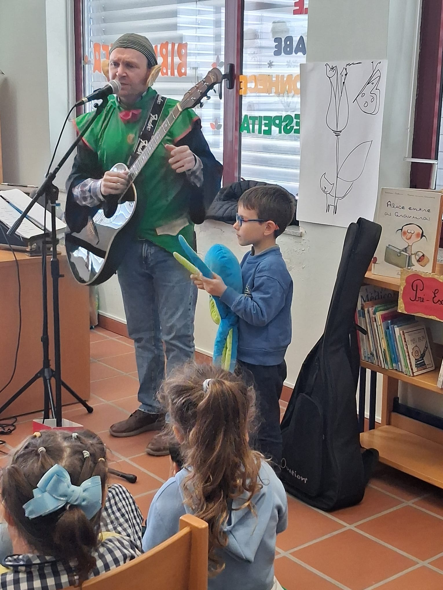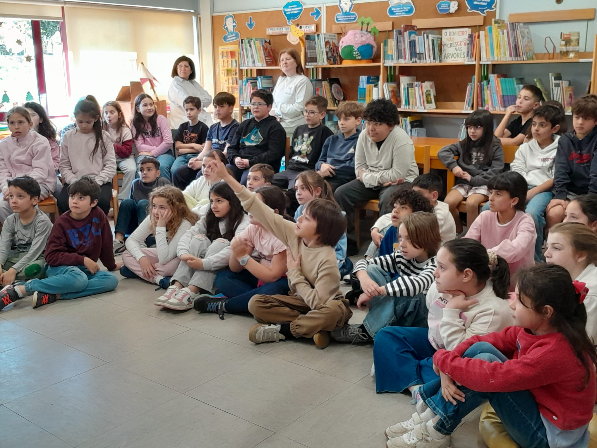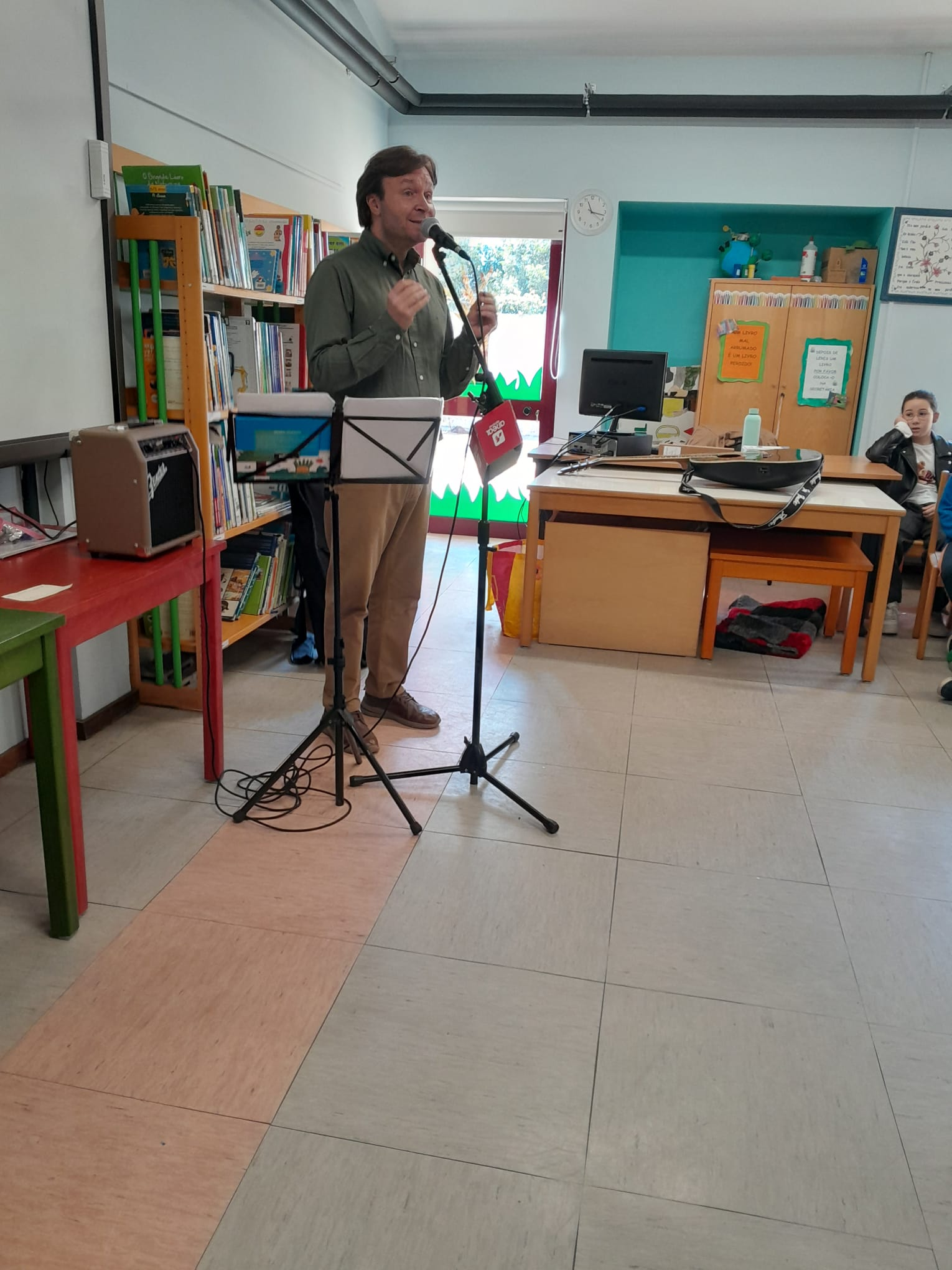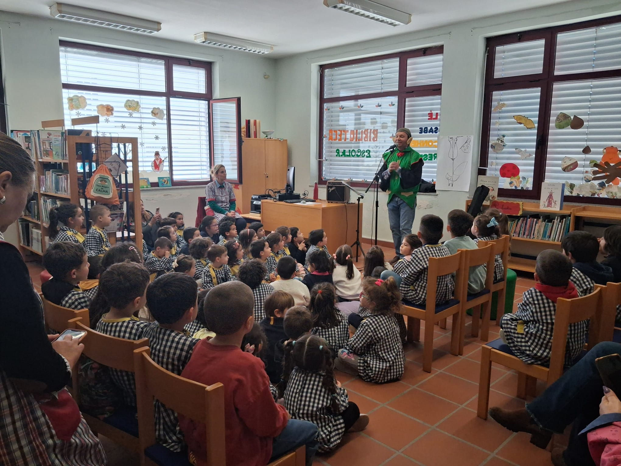 A sessão foi ainda enriquecida por momentos musicais únicos, acompanhados pela sonoridade calorosa e acolhedora da viola. As músicas originais e alegres criaram uma atmosfera de partilha e entusiasmo, permitindo que os alunos se envolvessem ativamente, quer nas histórias, quer nas canções, tornando a experiência ainda mais memorável.