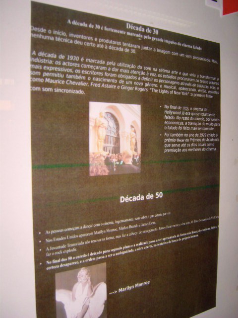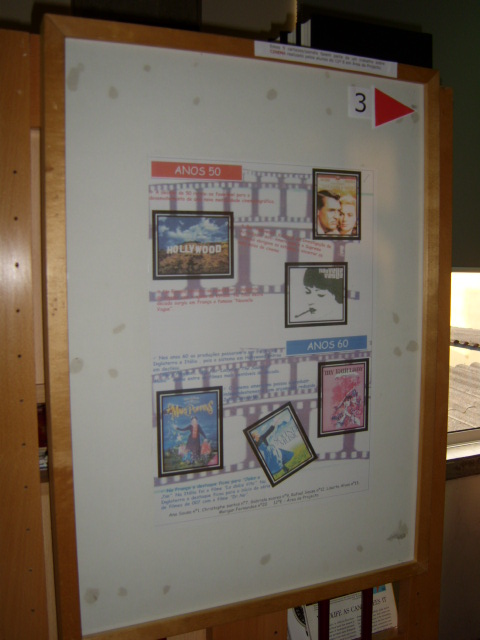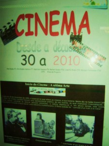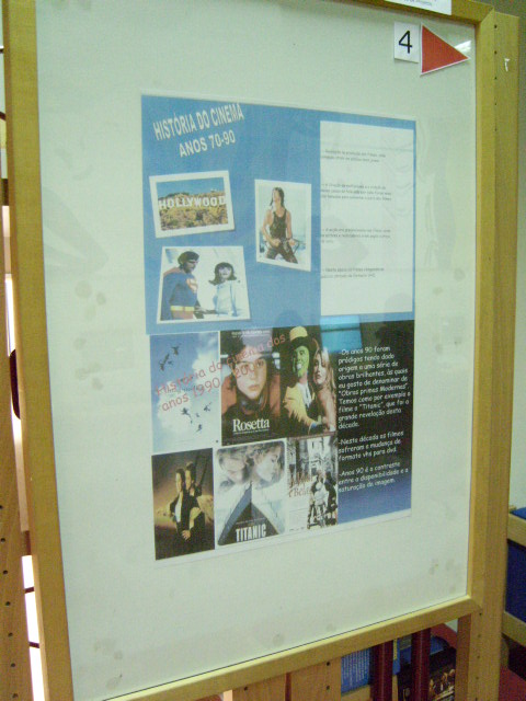 Os alunos do 12ºE apresentam uma série de 5 cartazes sobre uma pesquisa realizada nas aulas de Área de Projecto com o professor Joaquim Moutinho que se encontra exposto ao público no interior da biblioteca. O tema desta pesquisa é: CINEMA DESDE A DÉCADA DE 30 A 2010.
