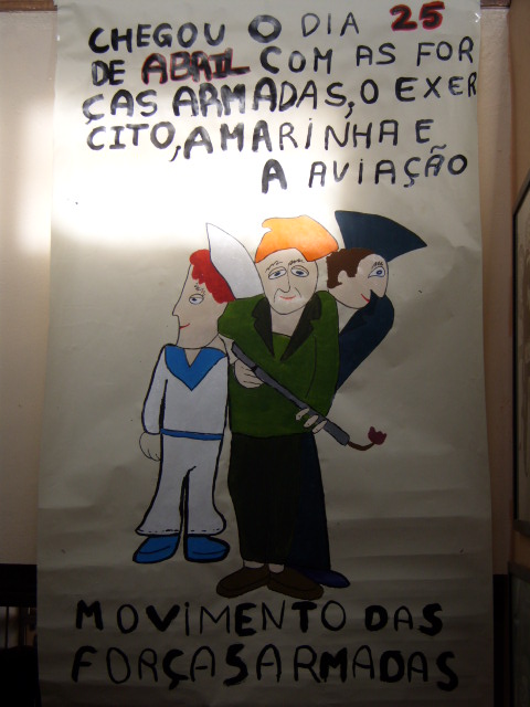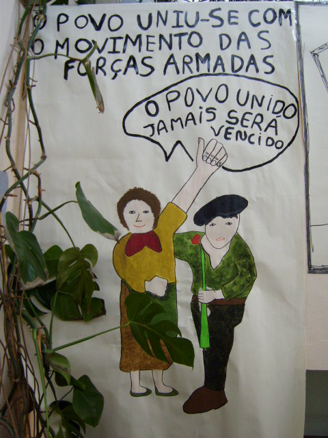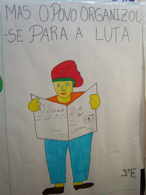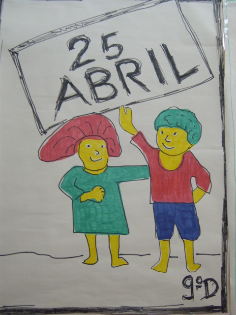 Os alunos do 9º ano, nas aulas de Educação Visual, Formação Cívica e Área de Projecto, associaram-se às comemorações desta efeméride e resolveram pintar um mural colectivo baseando-se em pinturas murais da época da Revolução dos Cravos que toda a comunidade apreciará durante esta semana.