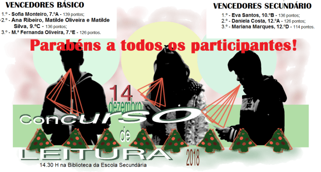 Realizou-se hoje, pelas 14.30 horas, o habitual Concurso de Leitura de Natal 2019 da Escola Secundária, uma atividade que encerrou o 1.º período, com o tradicional entusiasmo, alegria e emoção dos seus concorrentes.