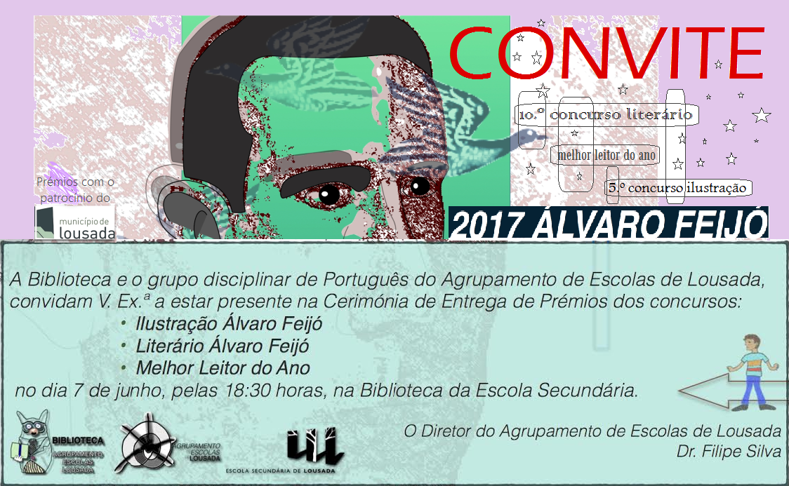 A equipa da biblioteca do Agrupamento de Escolas de Lousada, com a colaboração dos professores de Português e de Artes Visuais, pretende incentivar a criação e divulgação literária em língua portuguesa e incentivar a capacidade criativa e a imaginação das crianças, estimulando a ilustração, através do desenho, a população escolar do Concelho de Lousada, no âmbito da homenagem ao 100.º aniversário de nascimento do poeta Álvaro Feijó, que por aqui viveu legando-nos uma coletânea de versos de especial importância na poesia portuguesa do século XX.