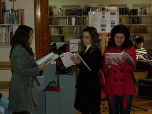 Pelas 14:30H deu-se início ao já habitual Concurso de Leitura, apresentado pela Coordenadora da Biblioteca, professora Graça Coelho e pela professora Alice Póvoa e em que os cerca de 30 alunos inscritos apresentaram as suas leituras.