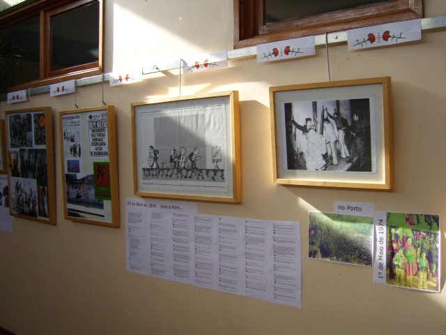 Destacamos a simbólica instalação de cravos, confecionados pelos alunos, numa rede colocada no exterior da escola, pinturas faciais, colorir imagens alusivas à Revolução dos Cravos.